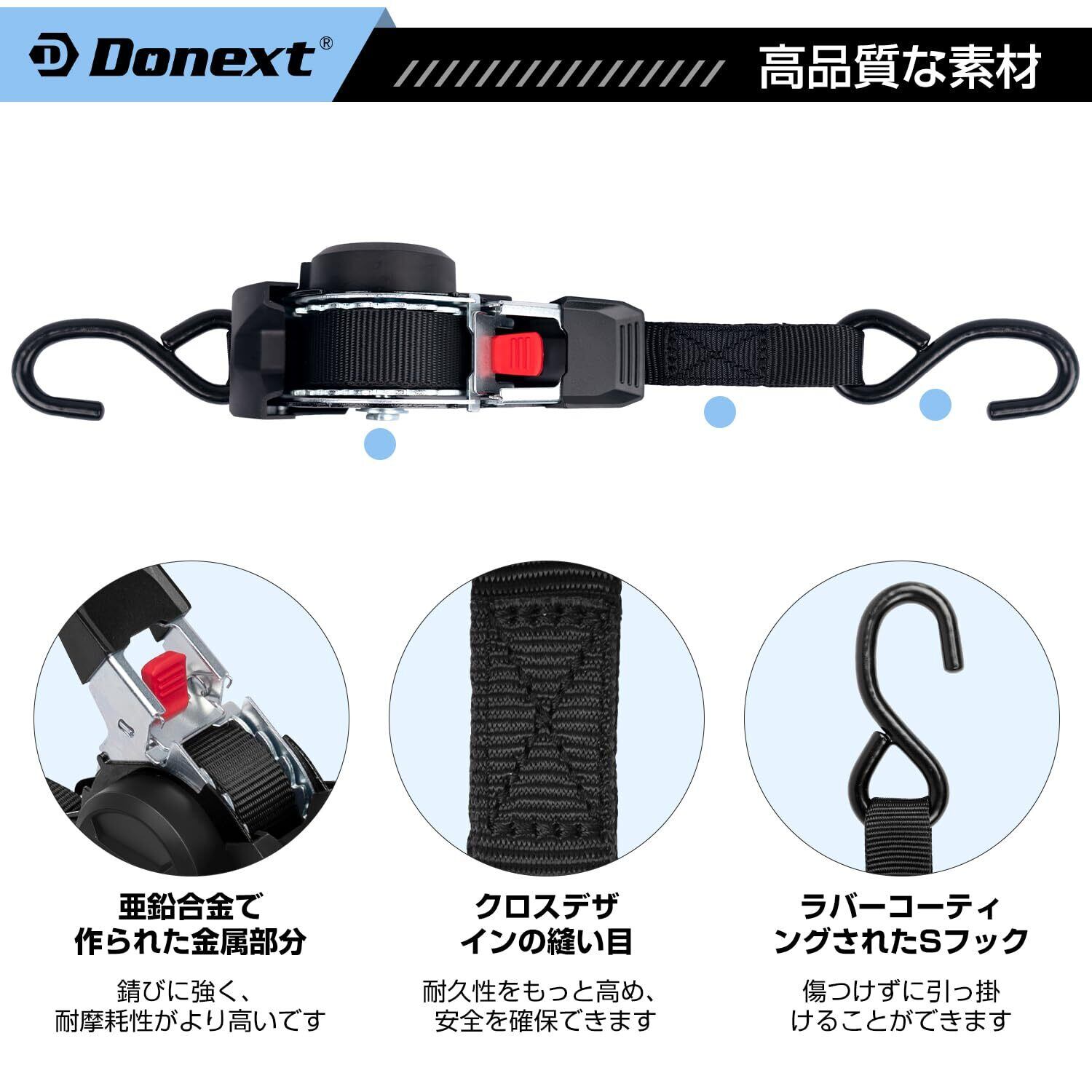 Donext ラッシングベルト ラチェット式ベルト 自動巻き取り式 Sフック 3Mx2本 幅25mm 破断荷重700kg 最大使用荷重233.3kg タイダウンベルト 荷締め 荷物固定 多用途 引越し 運搬用 ブラック