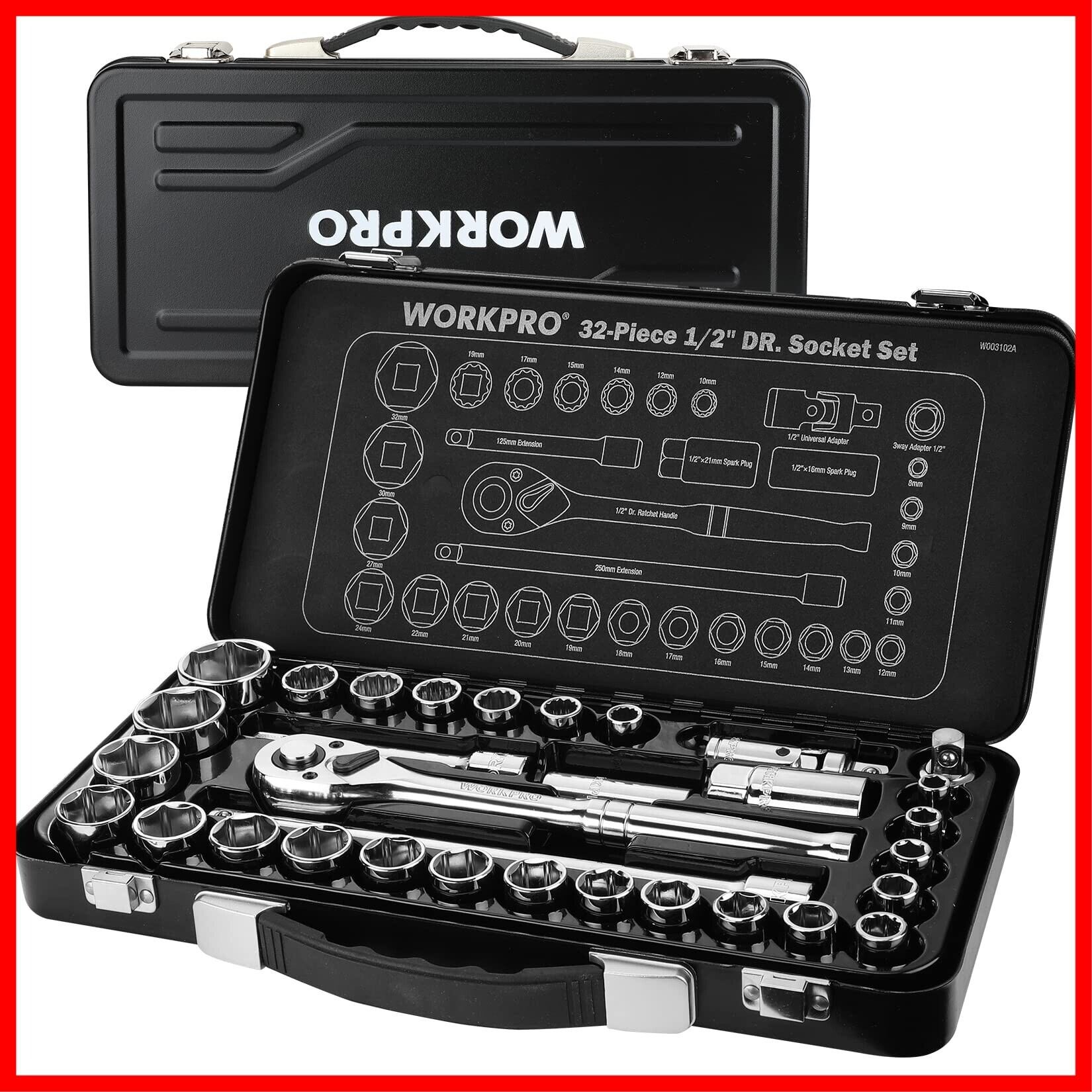 WORKPRO ソケットレンチセット 差込角12.7mm 32点セット ガレージツールセット クイックリリースラチェットハンドル 鉄製収納ケース付き バイク 自動車整備 工具セット