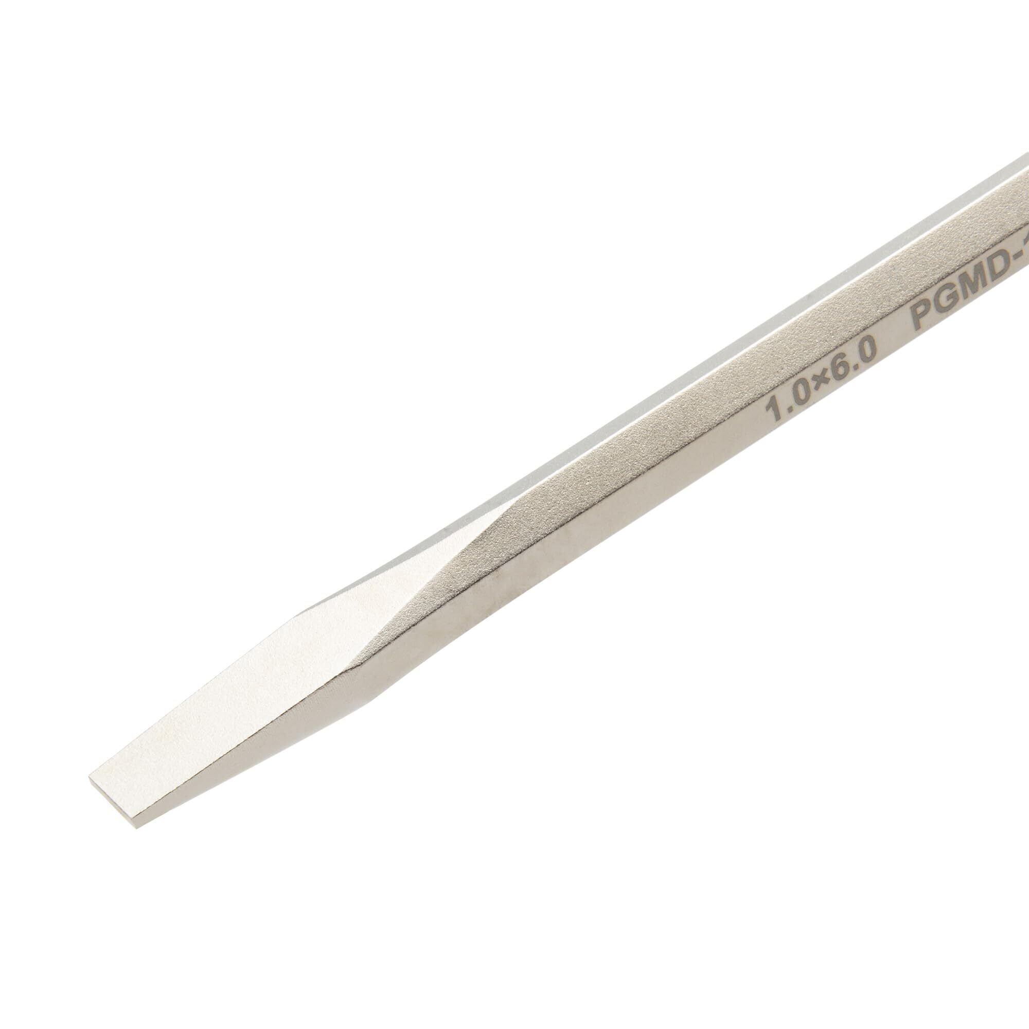 こだわりのオリジナル先端形状、マイナスの先端は溝を傷めにくい先端平行形状。