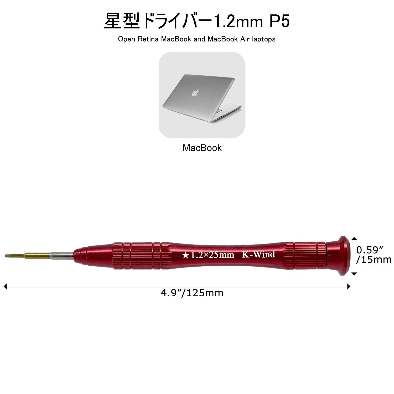 Kannony Wind MacBook用五角 P5ドライバー 星型1.2mmドライバー S2鋼製 上部360°回転 5溝ドライバー MacBook Air/MacBook Pro分解キット パネル分解 交換 コンパクトな特殊ネジ用のドライバー(12.5cm)