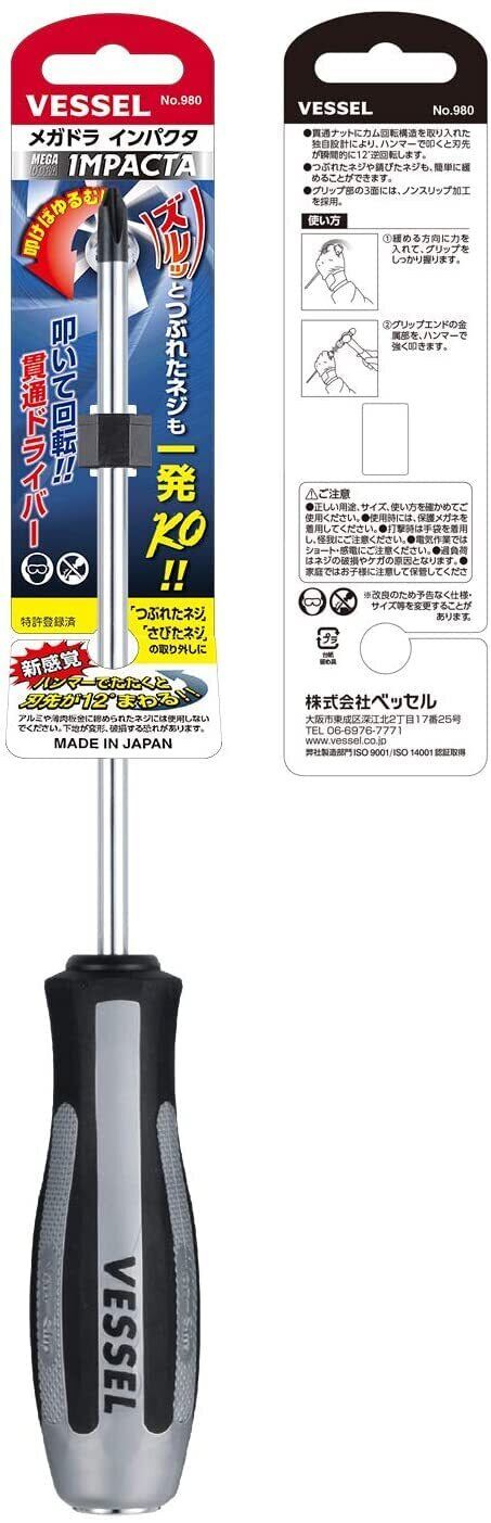 ベッセル(VESSEL) メガドラ インパクタ 貫通ドライバー +2×150 980