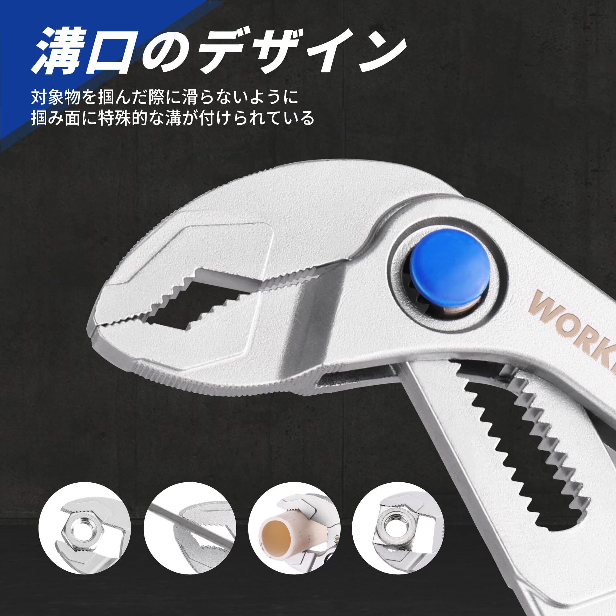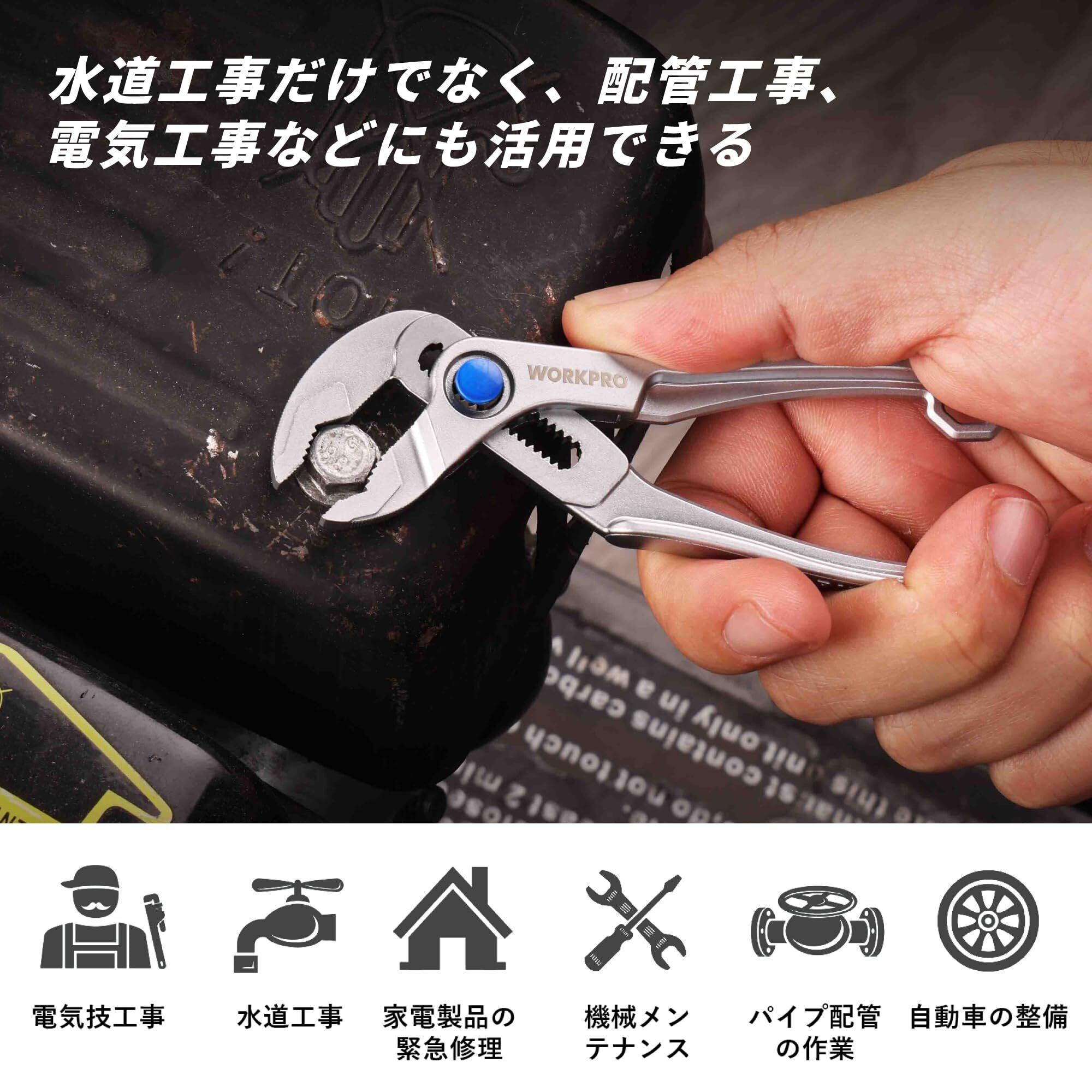 WORKPRO ウォータポンププライヤー ミニウォータープライヤー 全長108mm 最大開口25mm クイックリリース調整タイプ 電気メッキ処理