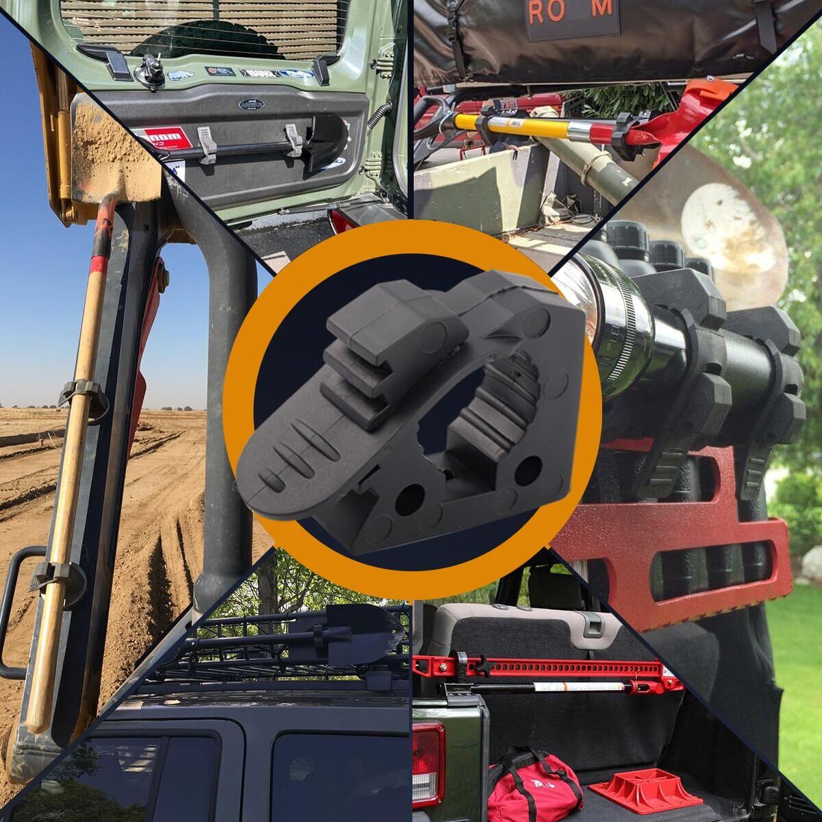 【適用対象】このスコップホルダーは29mm~35MMの直径の工具に適合します。スコップ、シャベル、スレッジハンマー、バール、ボルトカッター、パイプレンチ、牽引ロープ、懐中電灯、傘、その他の農業用工具などの固定や取り付けにも適しています。