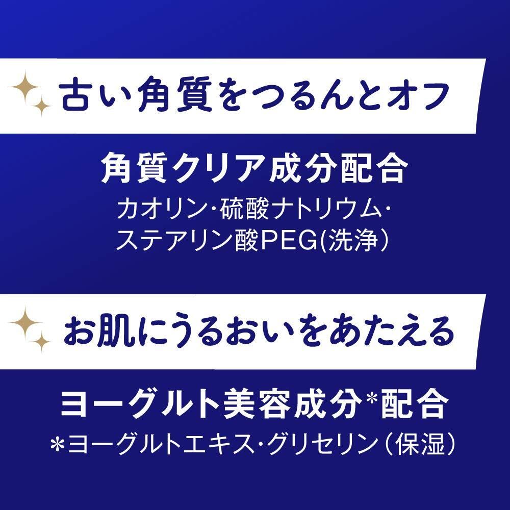 水、グリセリン、ミリスチン酸、ラウリン酸、ラウレス硫酸Na、水酸化K、ジステアリン酸グリコール、パルミチン酸、香料、コカミドMEA、ヒドロキシプロピルメチルセルロース、BG、ヨーグルト液(牛乳)、ラウレス-4、ステアリン酸PEG-150、エチドロン酸、カオリン、ポリクオタニウム-7、EDTA-2Na、ポリクオタニウム-6、ラウレス-16、硫酸Na、ポリクオタニウム-52、EDTA-3Na、水酸化Na、安息香酸Na
