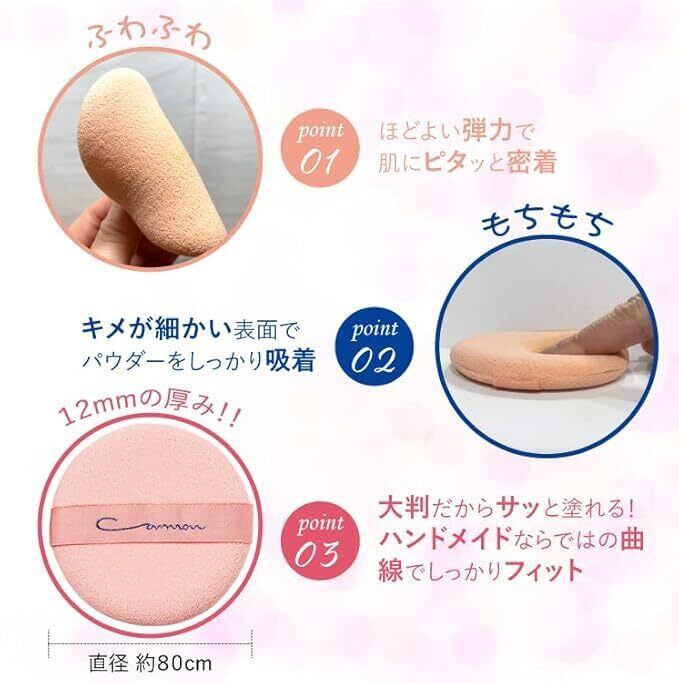 ファンデーションや粉化粧品に最適。ハンドメイドの曲線調整で使用感が素晴らしく、一度使用するとやめられない優秀パフです!