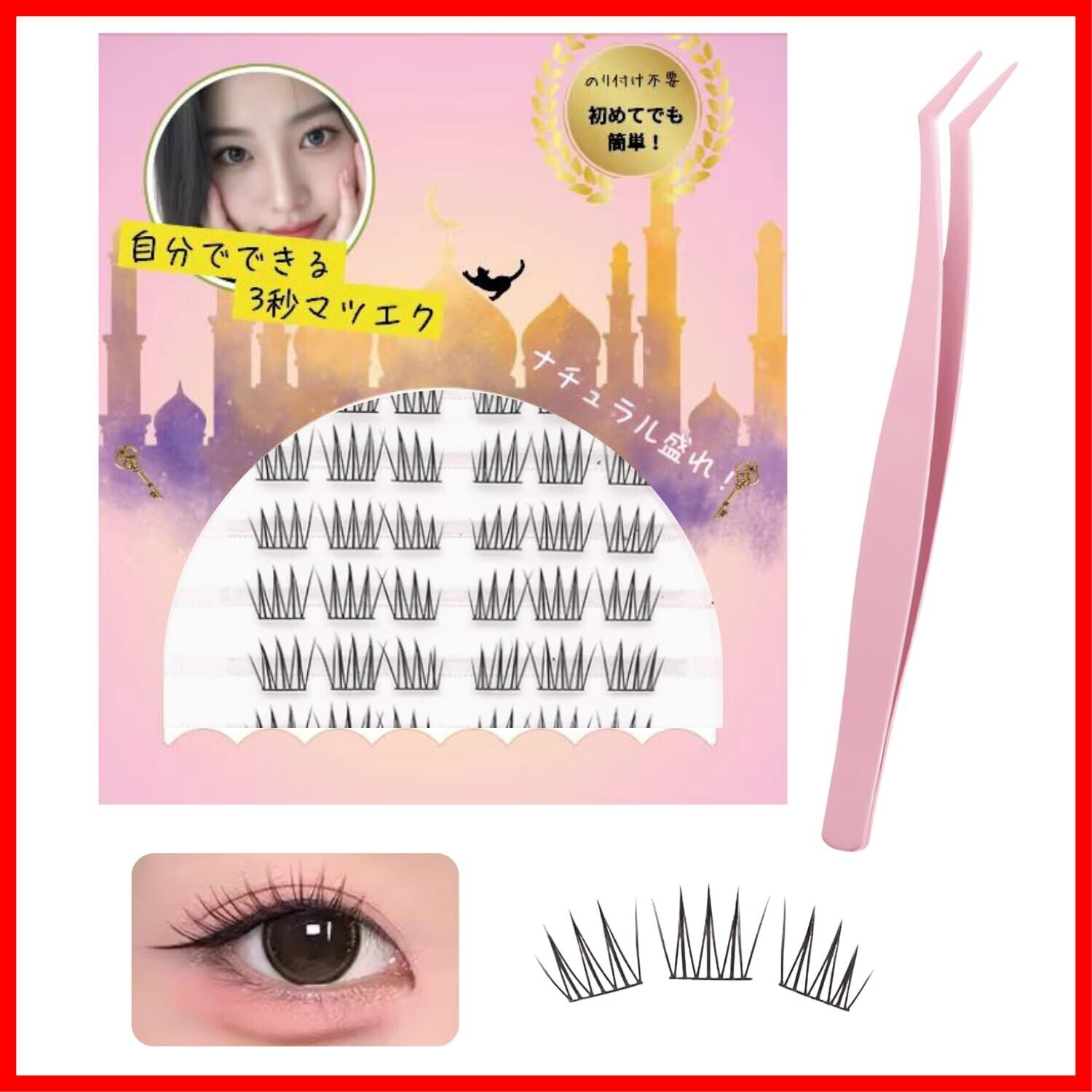 【つけま革命! 接着剤不要のつけまつげ|初心者にも使いやすい部分用タイプ】 接着剤を使わずに装着できる、1束ずつの部分用つけまつげ。慣れていない方でも簡単に使えて、朝のメイク時間をぐっと短縮。お好きな位置に自由に組み合わせることで、3〜5束だけでパッと明るく印象的な目元に。ナチュラルメイクからしっかりメイクまで、気分に合わせてアレンジ自在です。 接着剤不要で肌にやさしい 一束ずつ自由にカスタマイズ可能 初心者でも簡単に装着OK 一日中ずれにくく、崩れにくい つけまつげ好きの女の子にぴったり このまつげを使えば、いつでもどこでも、あなたらしい完璧なアイメイクが楽しめます。きっとお気に入りの1品になります"
