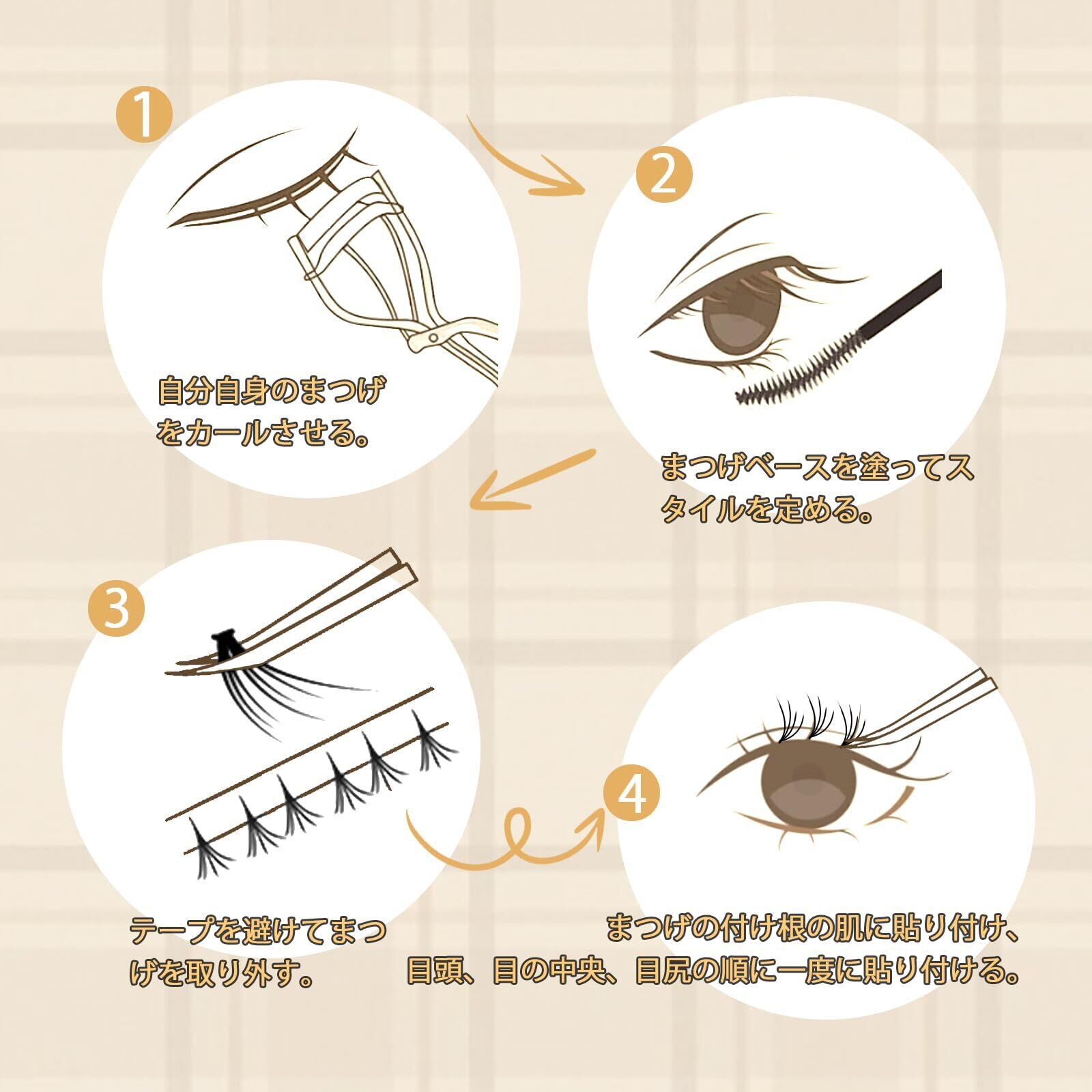 【ノリ不要!すぐピタまつ毛】このまつげ用のフェイクまつげは、根元に接着テープが付いているので、別途まつげ用の接着剤を使う必要はありません。忙しい朝やイベント時でも時間を節約できます。