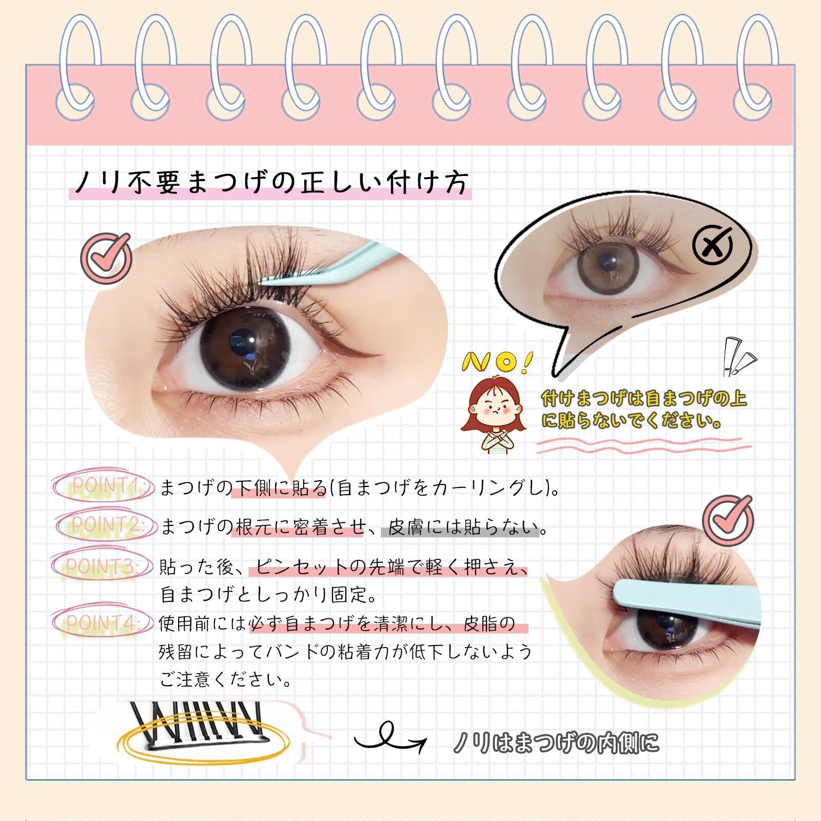 【メイクやシーンに合わせて自由に使える】:部分用タイプだから、ナチュラルメイクからしっかりメイクまで幅広く対応。まつ毛のボリュームを足したい部分に貼るだけで、簡単に印象チェンジが可能。