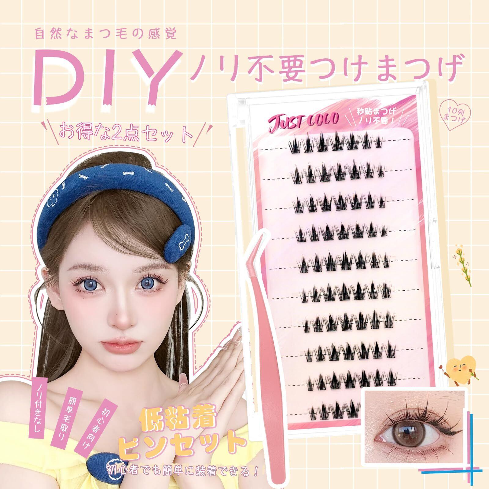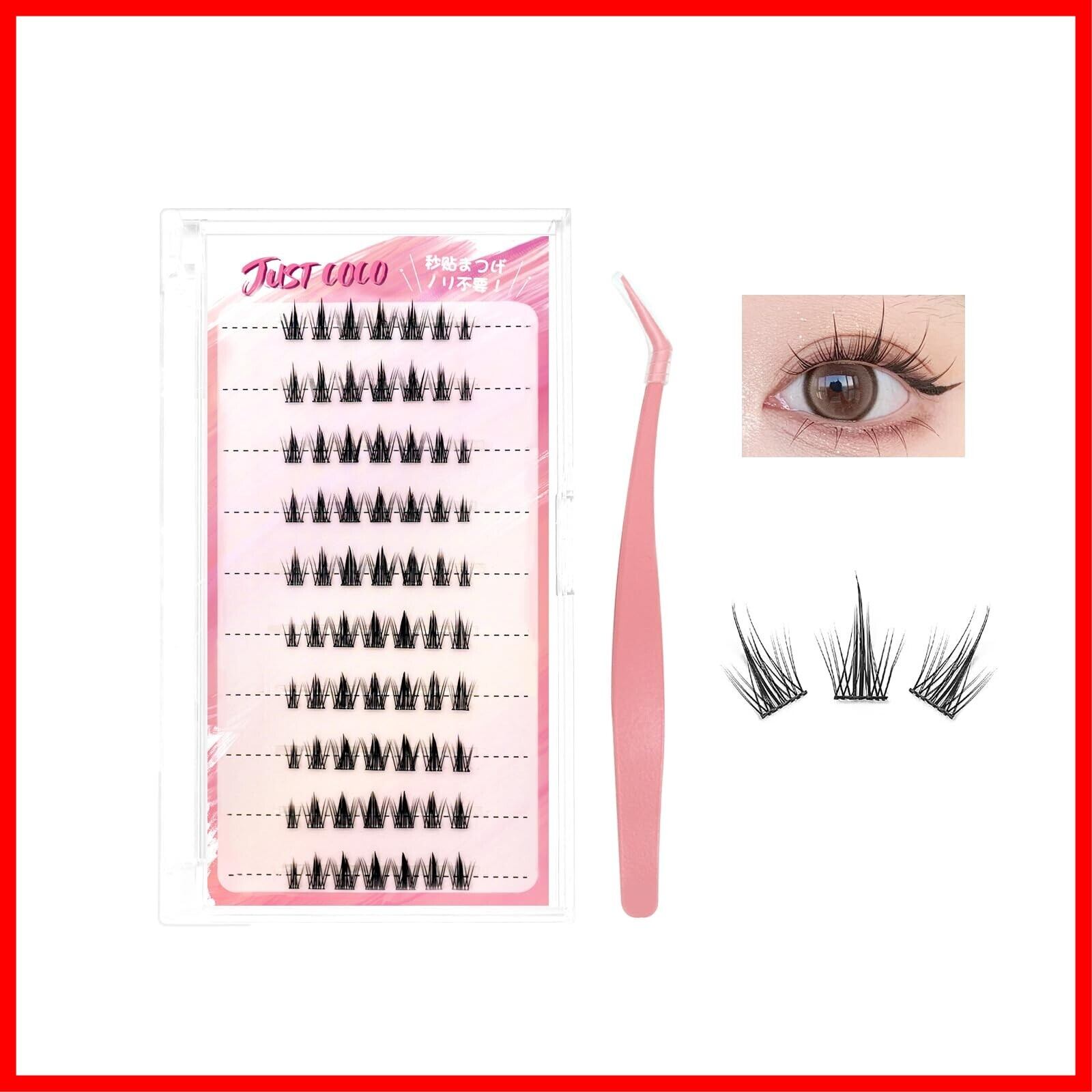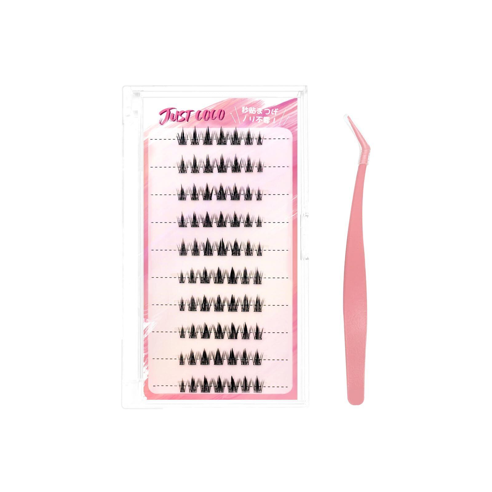 JUSTCOCO ノリ不要 束感ナチュラル 部分用つけまつげ 接着剤不要 のり不要 グルーなしつけまつげ グルー不要 つけまつ毛 可愛い 自然な束感 人気 簡単装着 初心者OK 粘着力強い マツエク風 自然なまつ毛 大容量 グルー不要まつげ用の専用ピンセット付き 韓国風(NO.10)