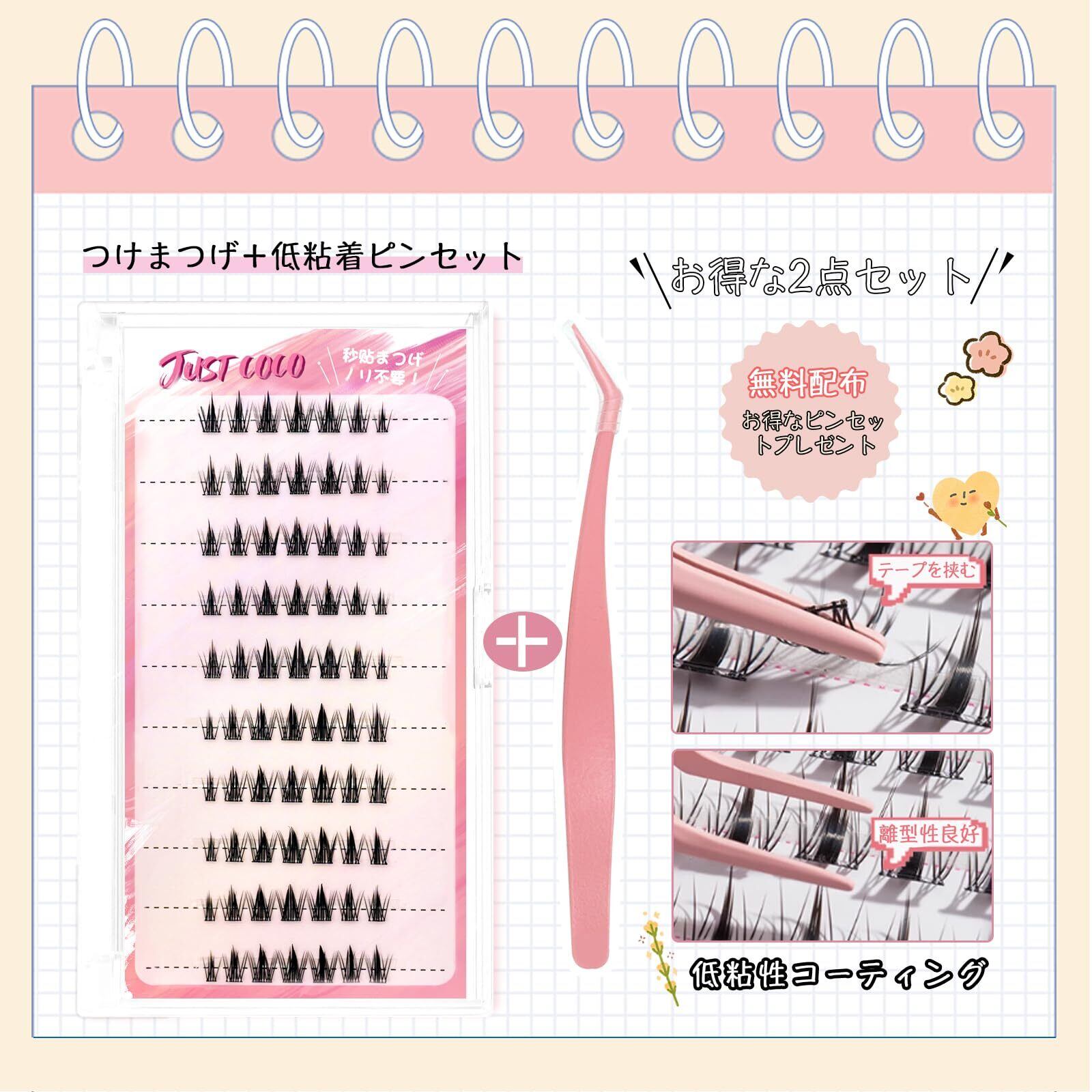 【特価商品】JUSTCOCO ノリ不要 束感ナチュラル 部分用つけまつげ 接着剤不要 のり不要 グルーなしつけまつげ グルー不要 つけまつ毛 可愛い 自然な束感 人気 簡単装着 初心者OK 粘着力強い マツエク風 自然なまつ毛 大容量 グルー不要まつげ用の専用ピンセット付き 韓国風(NO.10) | Cherry Blossoms