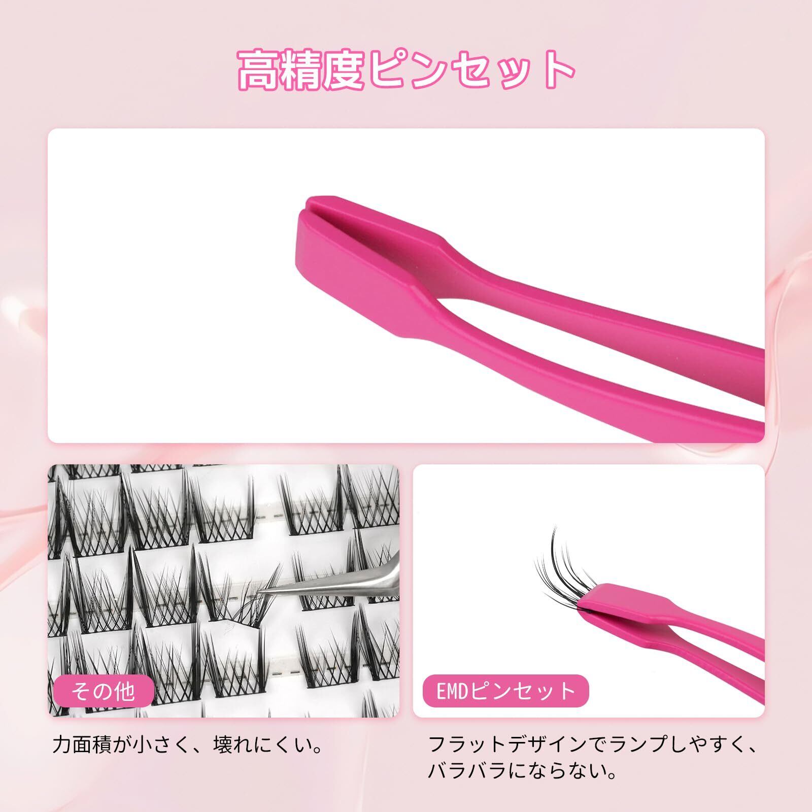 EMEDA つけまつげピンセット ステンレス素材 幅広タイプ 持ちやすい 軽量 人間工学デザイン まつ毛 ピンセット ピンク