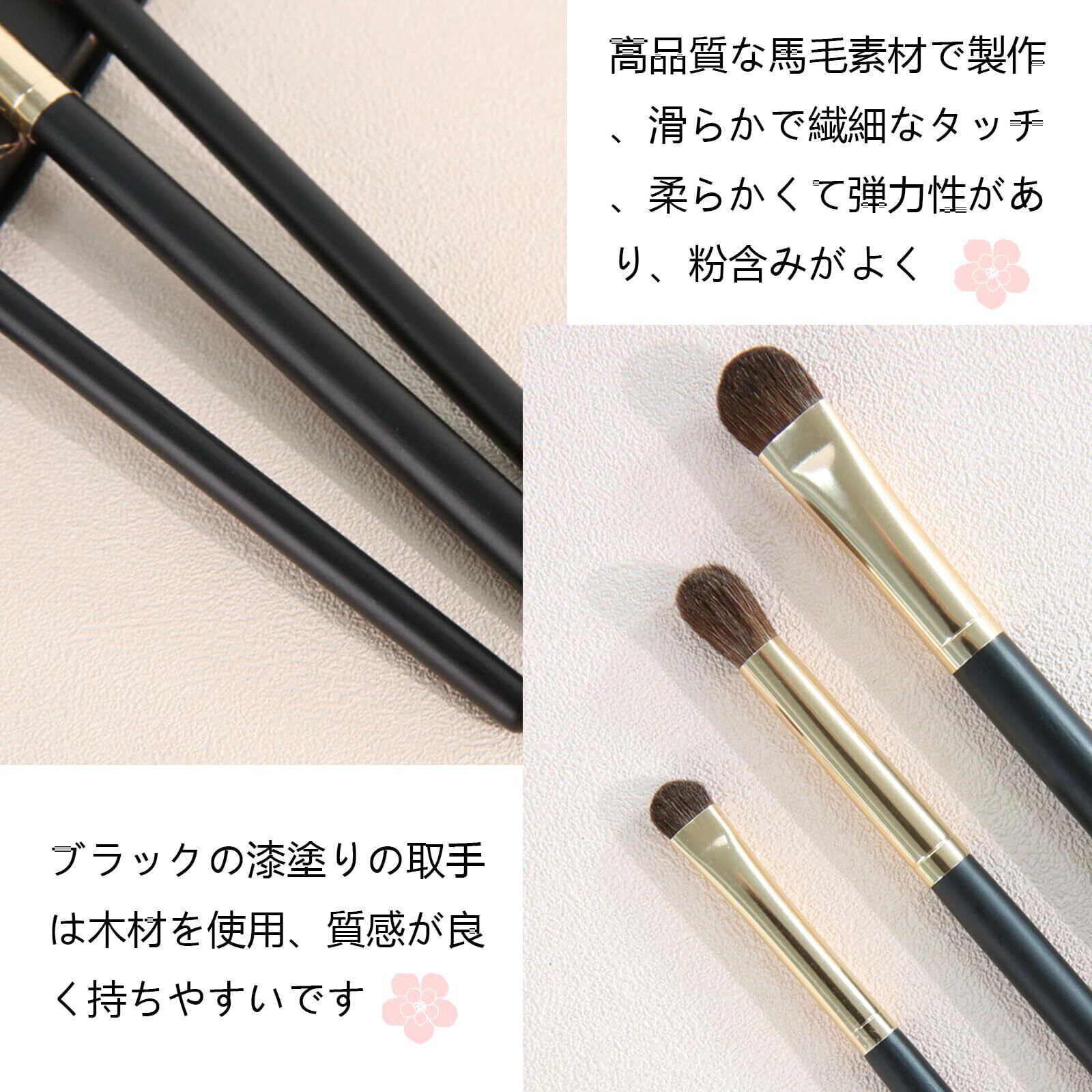 【高品質の素材】アイシャドーブラシの先端は高品質な馬毛素材で製作、滑らかで繊細なタッチ、柔らかくて弾力性があり、粉含みがよく、アイメイクをぼかすのに便利です。光沢のあるゴールドのアルミニウム管を使用し、耐久性に優れ、高級感溢れるデザイン。ブラックの漆塗りの取手は木材を使用、質感が良く持ちやすいです。