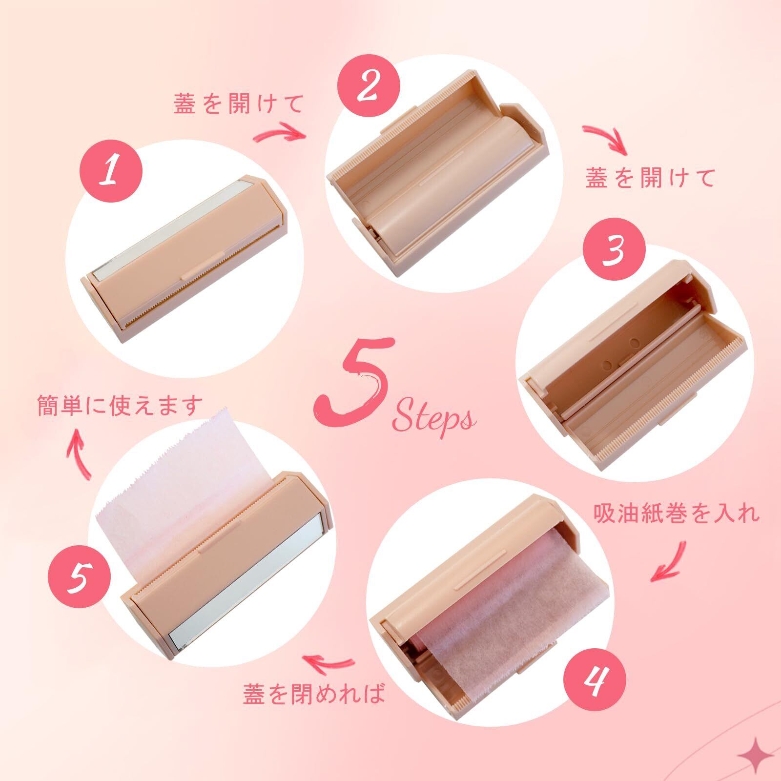Lashidol ロール式あぶらとり紙 ミラー付き 六角形ボックス 紙おしろい 油取り紙 携帯便利 長さ調整可能 皮脂吸収 フェイスケア メイク直し用 (ピンク S)