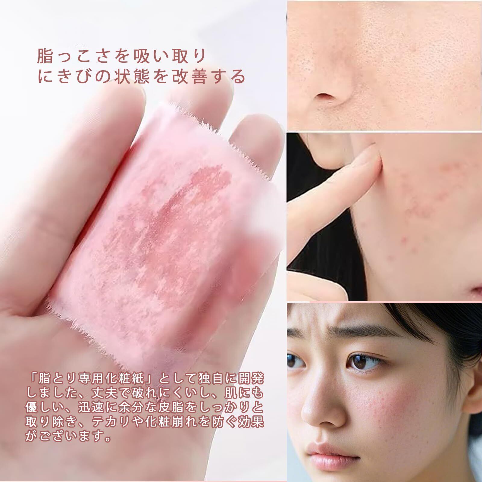 【高い吸油力でメイク崩れ防止】 高品質な吸油紙を使用し、余分な皮脂をしっかり吸収。肌のテカリを抑え、サラサラな状態を長時間キープ。メイク崩れを防ぎます。