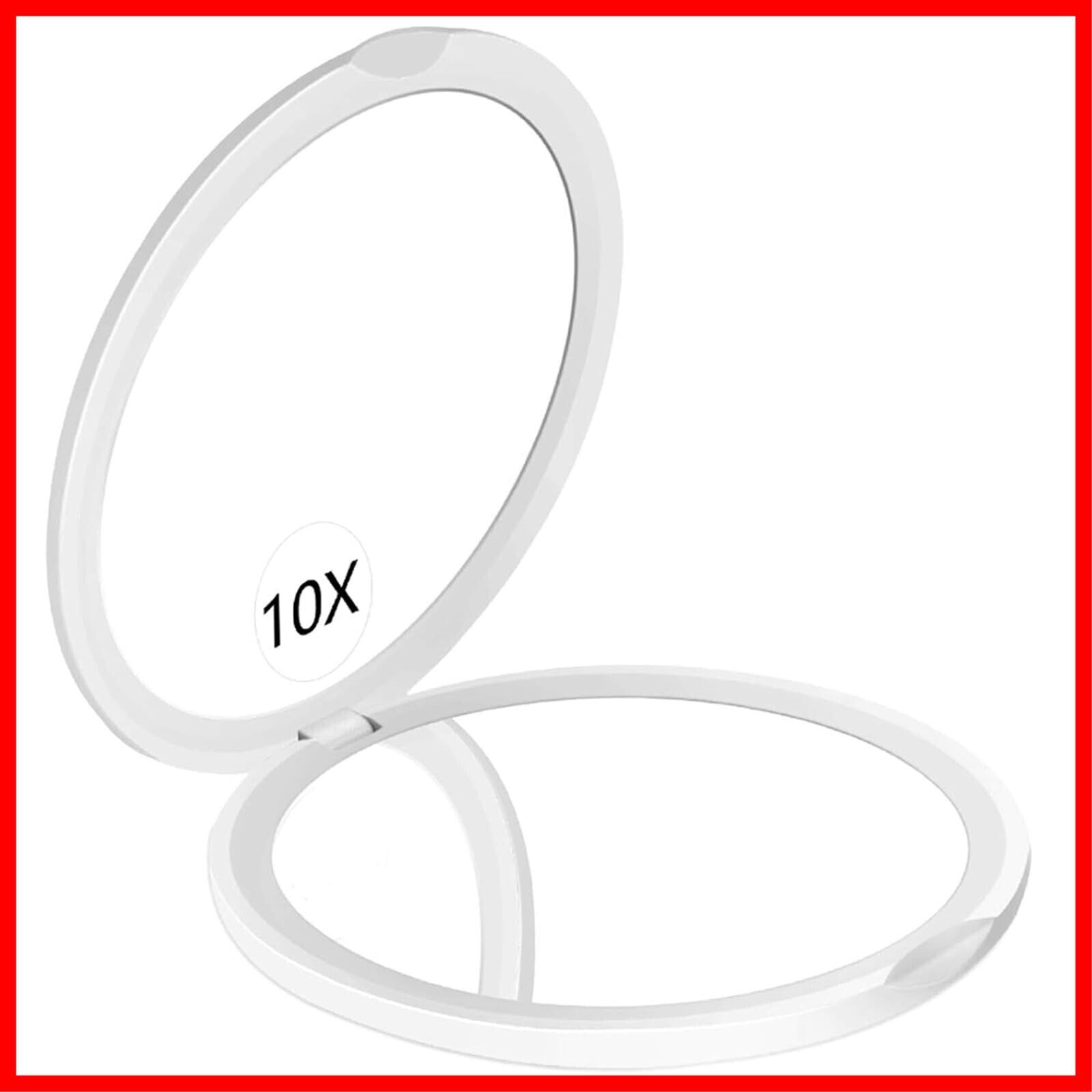 KALOLINNA コンパクトミラー 両面化粧鏡 10倍 拡大鏡 手鏡 折りたたみ鏡 角度調整可 持ち運び便利 円形 (ホワイト)