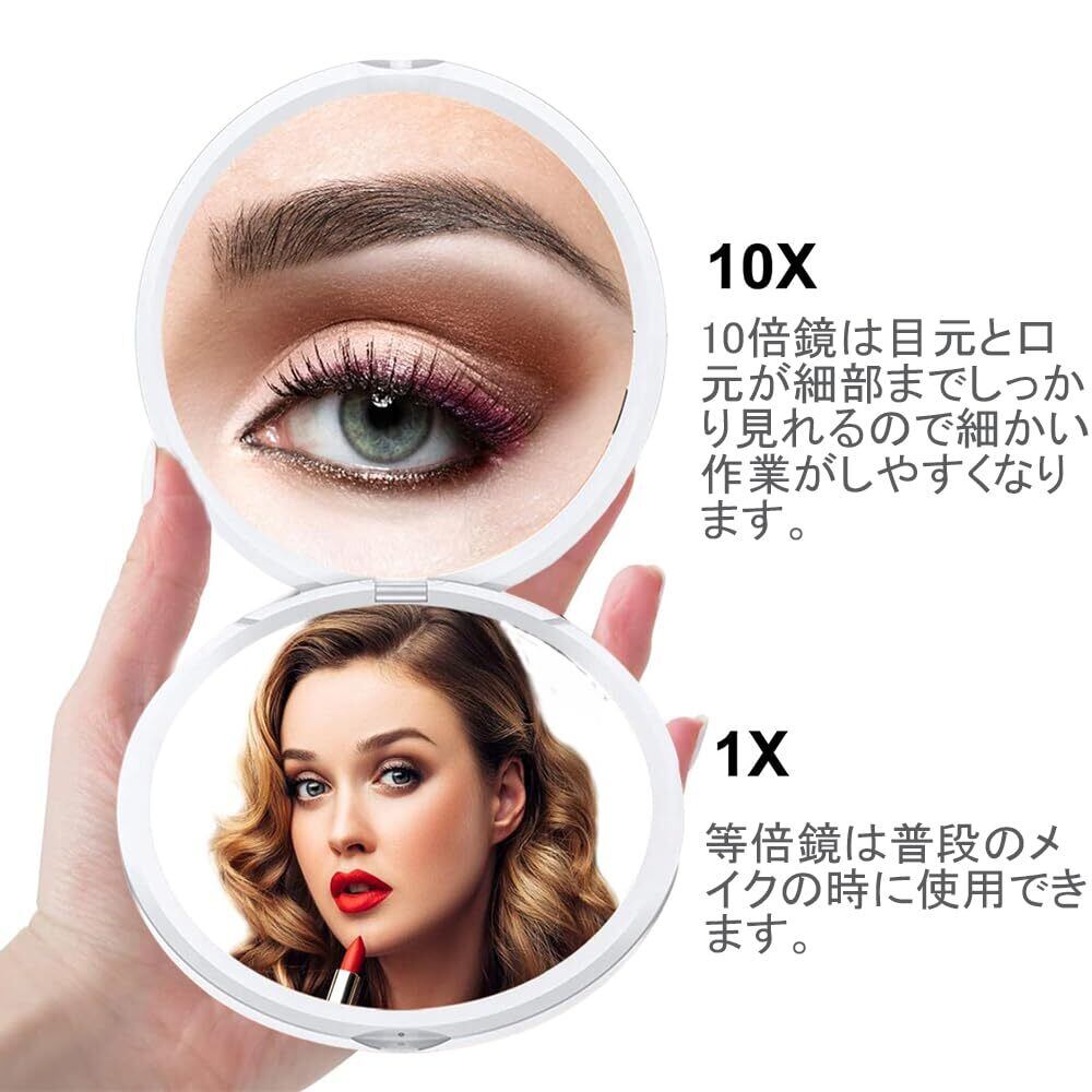 【10倍拡大鏡】この多機能メイクミラーの最大の魅力は、ユニークな10倍拡大鏡機能です。メイクや細部の修正を容易にするだけでなく、コンタクトレンズを着用する際や繊細な目元メイクを行う際にも大変便利です。