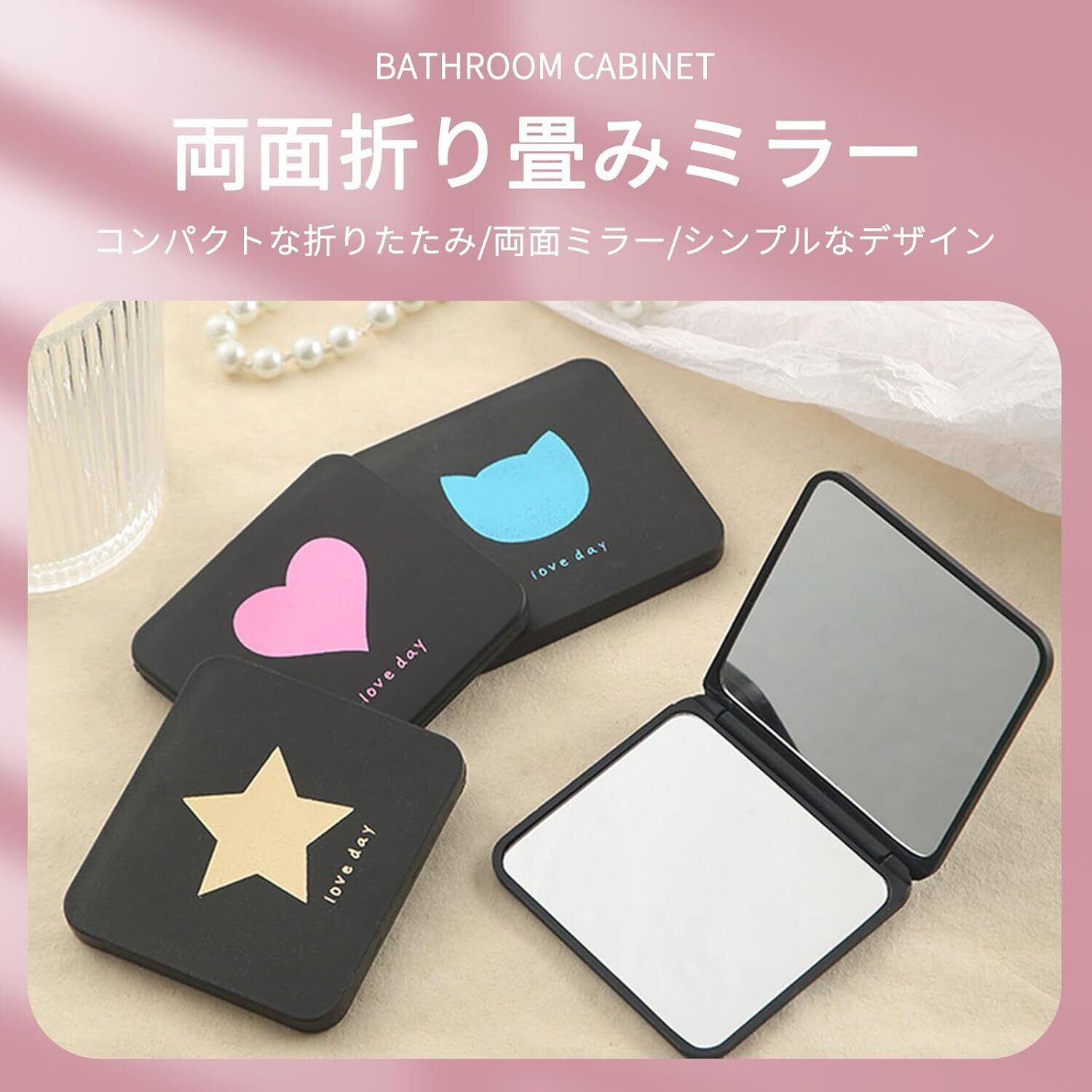 Baanando コンパクトミラー 手鏡 折り畳み式 両面化粧鏡 超軽量 携帯 収納便利 メイク道具 人気 おしゃれ かわいい(猫)