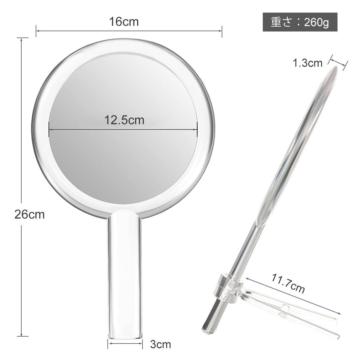 MILEDUO 手鏡 鏡 化粧鏡 両面メイクミラー 等倍と10倍拡大鏡 ハンドル付き両面鏡 卓上手鏡 スタンドミラー 円形化粧鏡 16CM クリア