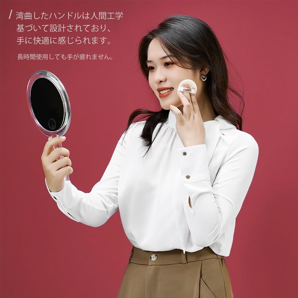 【ハンドヘルドおよびデスクトップのデザイン】この手鏡には追加のスタンドデザインがあり、テーブルの上に立てて卓上ミラーとして使用できます。フレキシブルブラケットでミラーの立ち角度を調整できます。メイクをはっきりと便利に見ることができます。スタンドを外すと手鏡になります。
