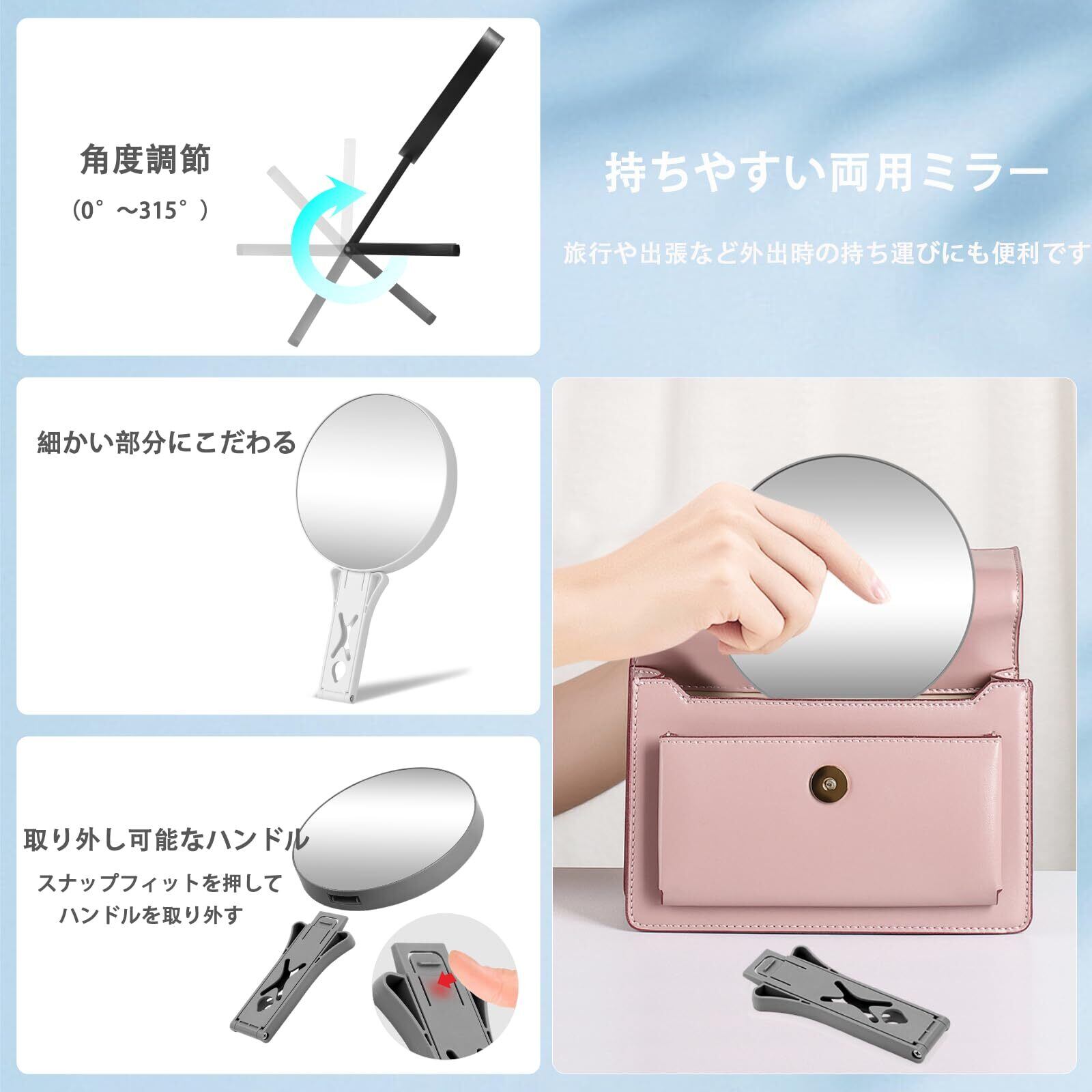 【卓上・手持ち・吊り下げ対応】化粧鏡は取り外し可能なハンドルと315度調整可能なスタンドが付きます。手鏡としても卓上ミラーとしても使用可能で、吊り下げ式としても設置することができます。メイクシーンや収納ニーズに合わせて柔軟に活用できます。