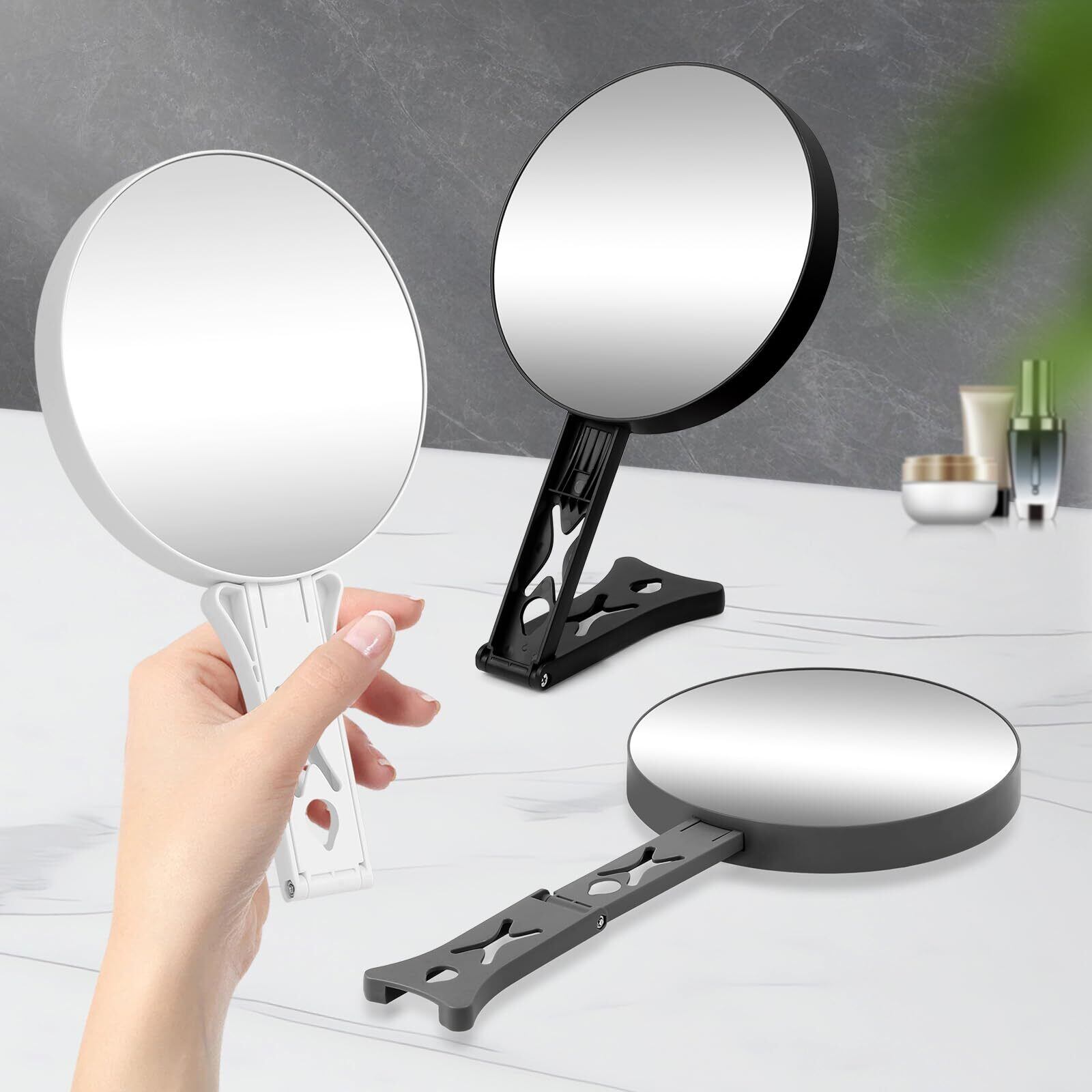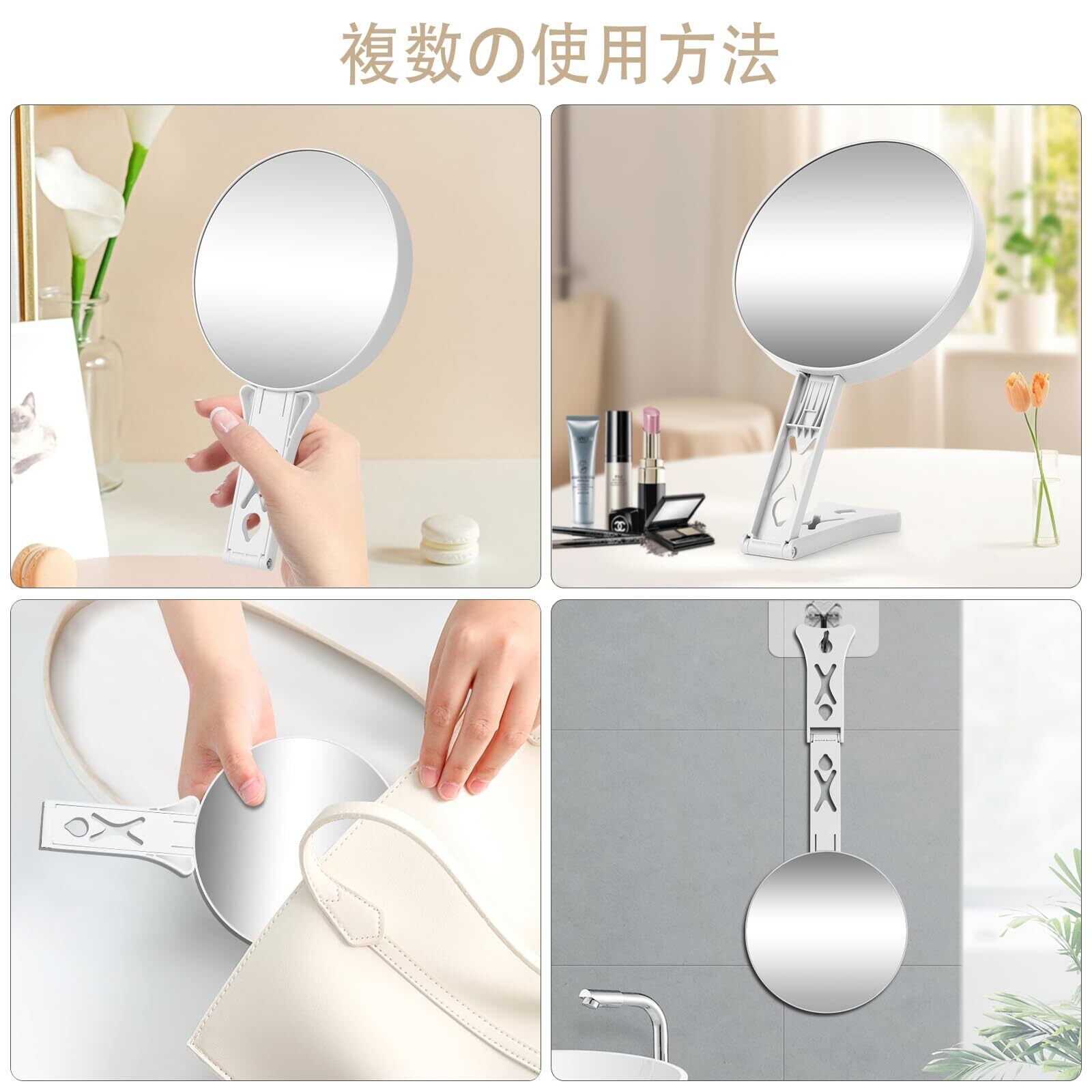 【在庫セール】手鏡 拡大鏡 メイク 10倍と等倍両面化粧鏡 折りたたみ 卓上ミラー&ハンドミラー 吊り下げ式 ハンドル取外し可能 コンパクト 軽量 持ち運び便利 円形 14CM クリア (ホワイト-10X) | Cherry Blossoms
