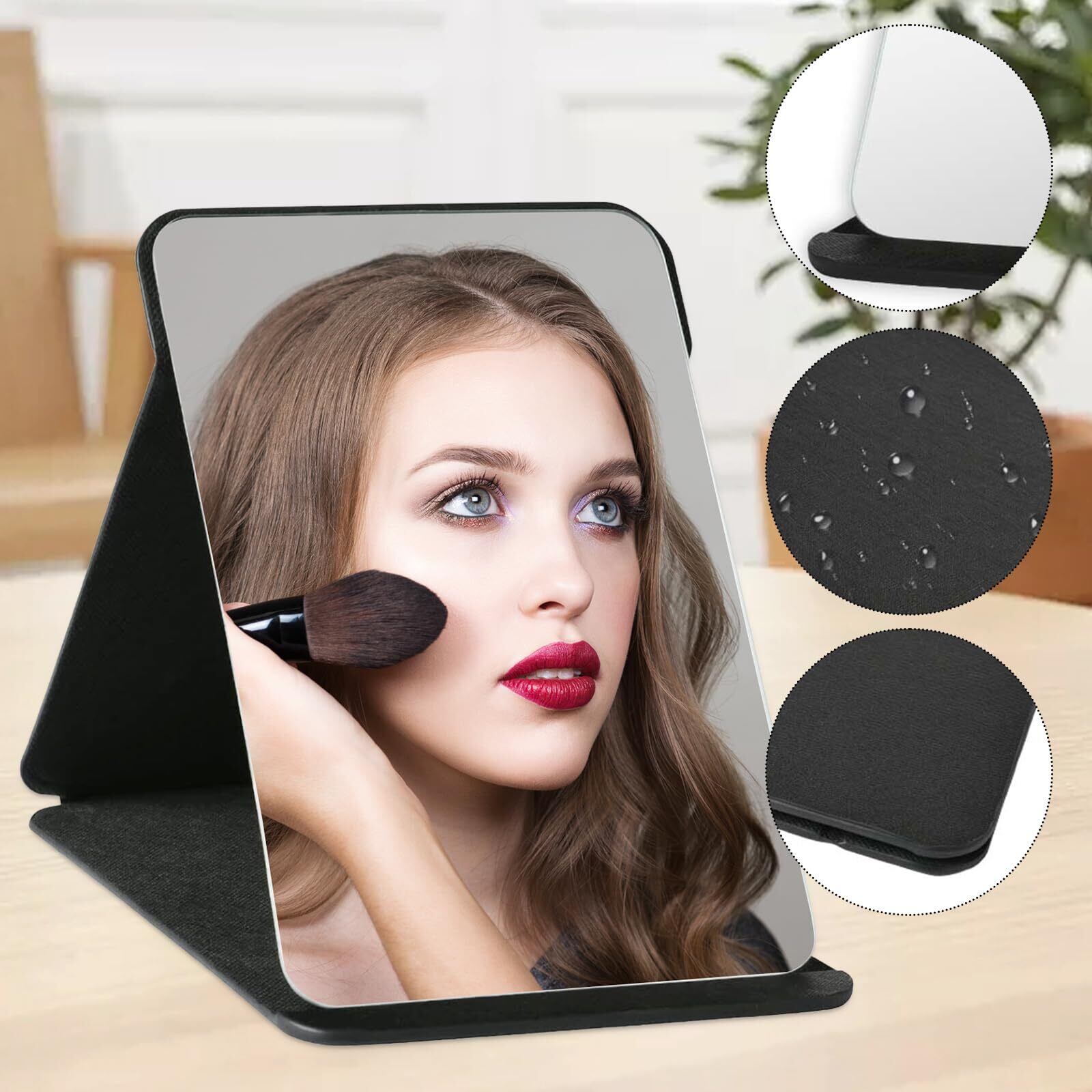 コンパクトサイズ: この巧妙に設計されたミラーは、わずか21 x 16 cmに折りたたむことができ、軽量で持ち運びが簡単です。旅行用バッグやハンドバッグに便利に収納でき、場所を取りません。