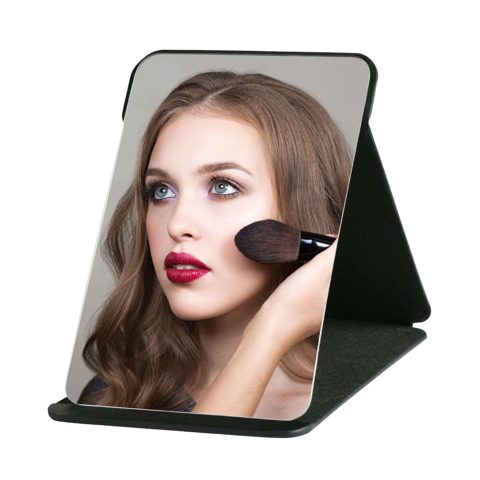 ポータブルミラーは、高品質の大型 (21 x 16 cm) 折りたたみ式ミラーで、透明度と重量が優れています。旅行に最適です。メイクアップや化粧品ケースに簡単に収まります。