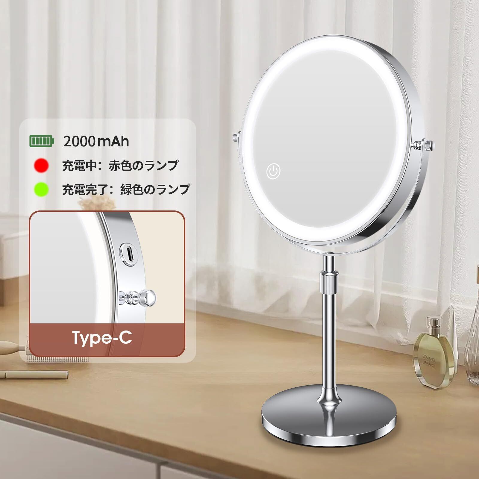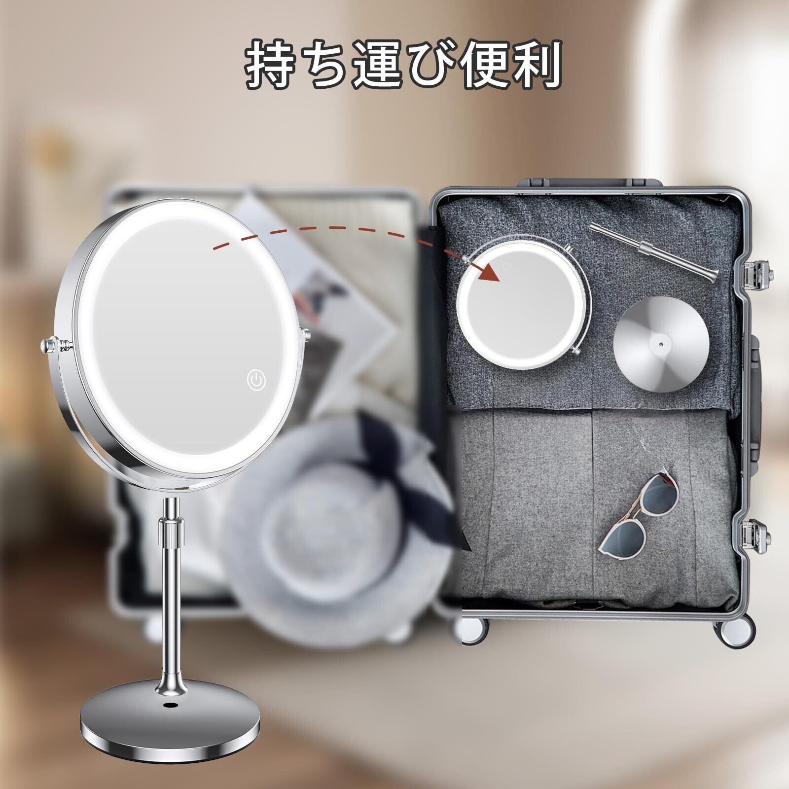 【特価商品】MILPROX 化粧鏡 ライト付き 女優ミラー 高さ調整 拡大鏡 卓上ミラー 8インチ USB充電式 2000mAh大容量 1倍10倍拡大鏡 寒暖自然色調節 明るさ調節 メイク メモリー 消し忘れ防止 タッチ式 360度回転 スタンドミラー | Cherry Blossoms