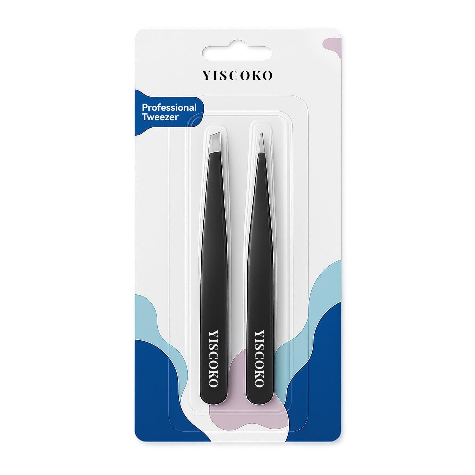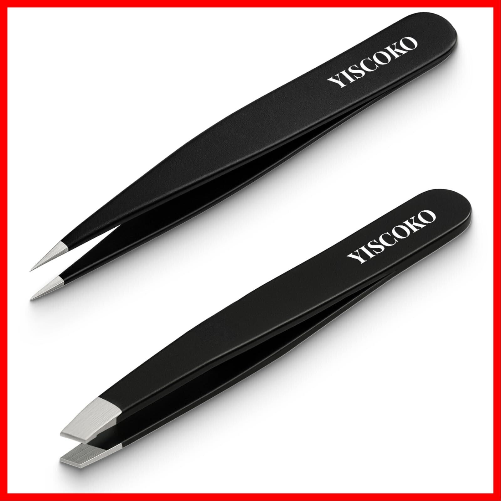 YISCOKO プロ仕様 毛抜き フェイシャルヘア用 女性、ステンレススチール製眉毛ツイーザー (2本入り、ブラック)