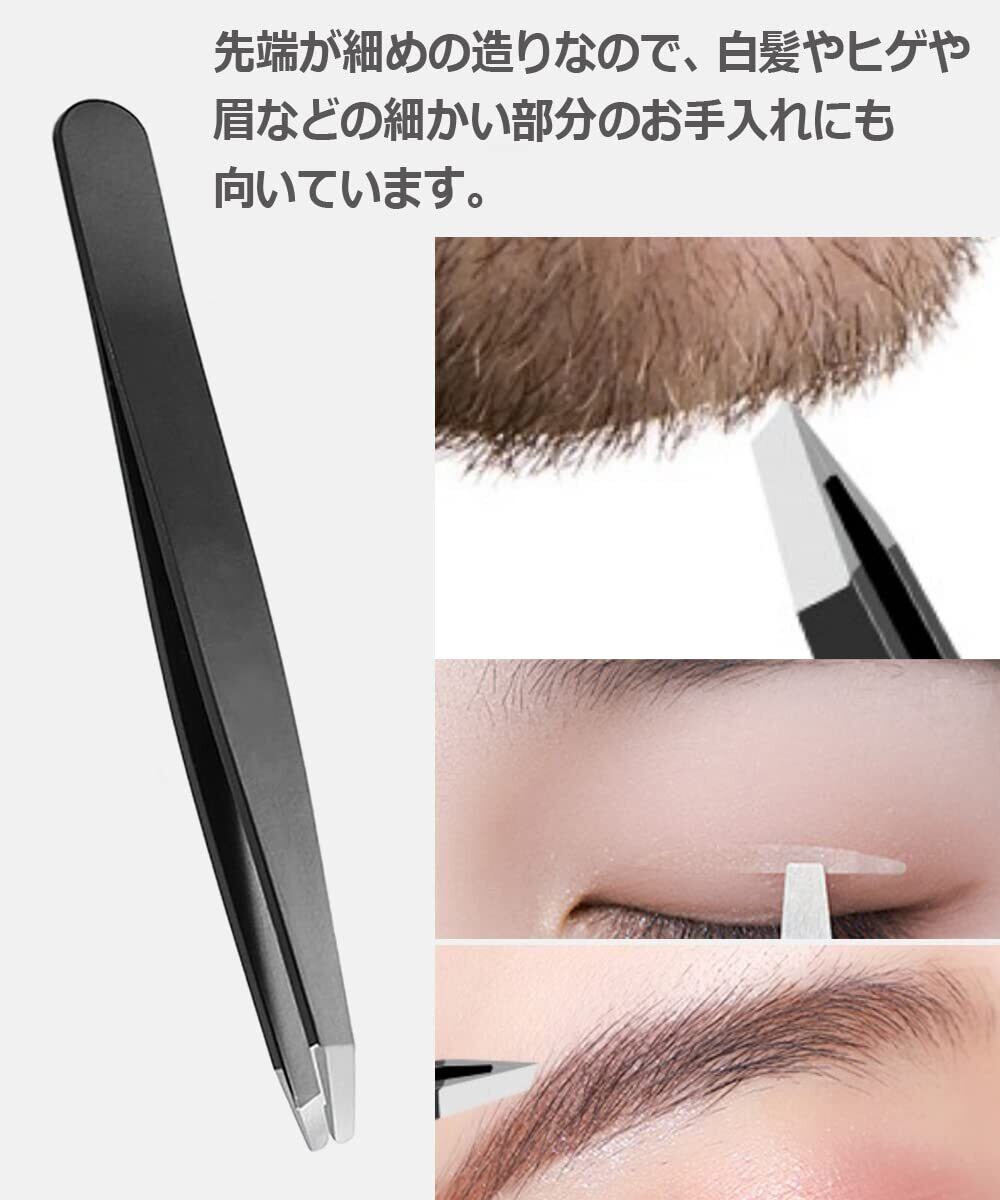 【把握力よい・抜きやすい】 毛抜きピンセットの先端の内側はツイル加工されているので、ズレたり、切れたりしません。 完璧なテンションと先端の精密な咬み合わせにより、眉毛を整えたり、細いヒゲを抜いたりすることができます。髪を根元からつかむのも引っ張るのもラクラクです。
