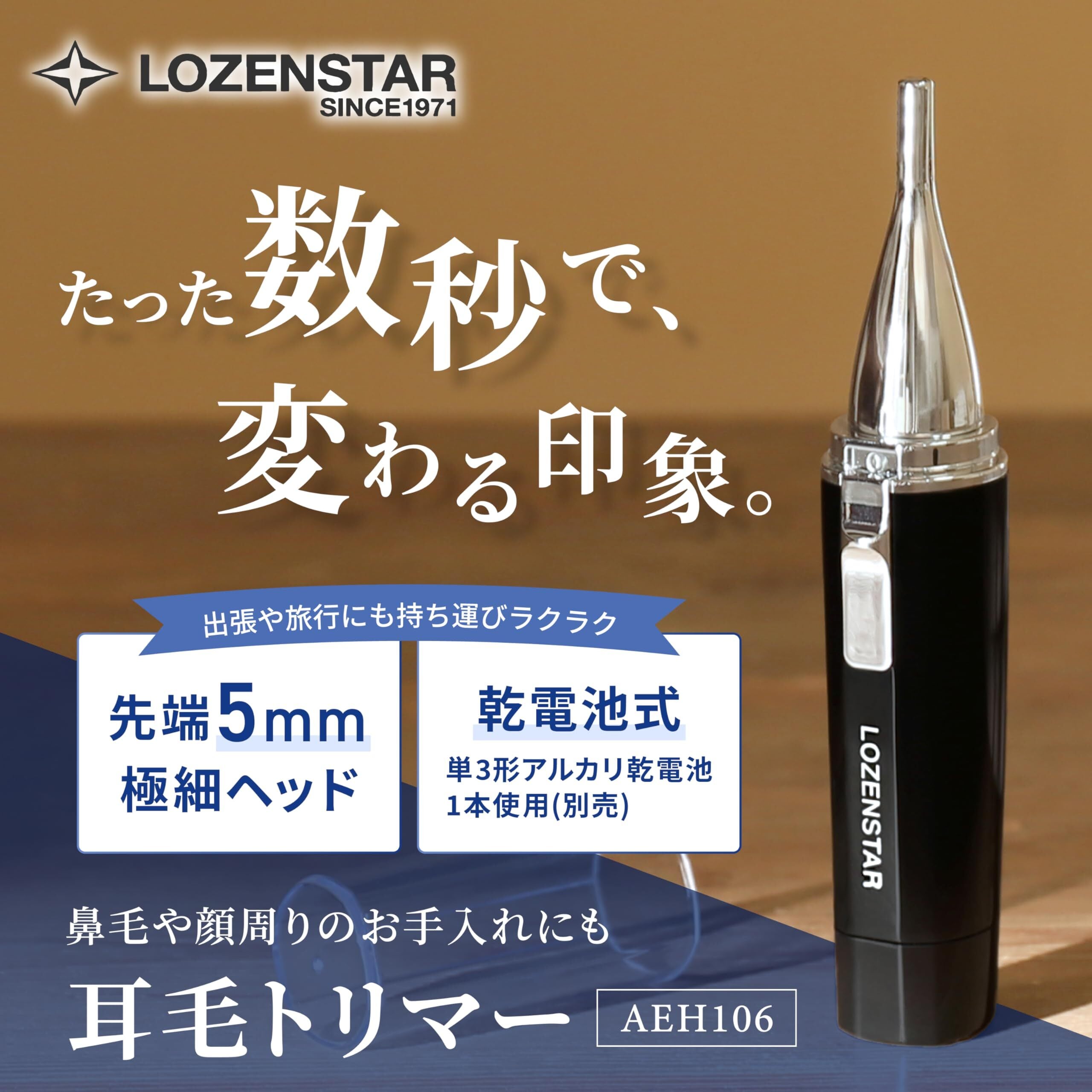 【新春セール】ロゼンスター 耳毛トリマー カッター 乾電池式 刃幅5mm 防水 水洗い可 鼻毛 顔周りメンズ コンパクト 出張 旅行 ガード付き 小型 ブラック AEH106 | Cherry Blossoms