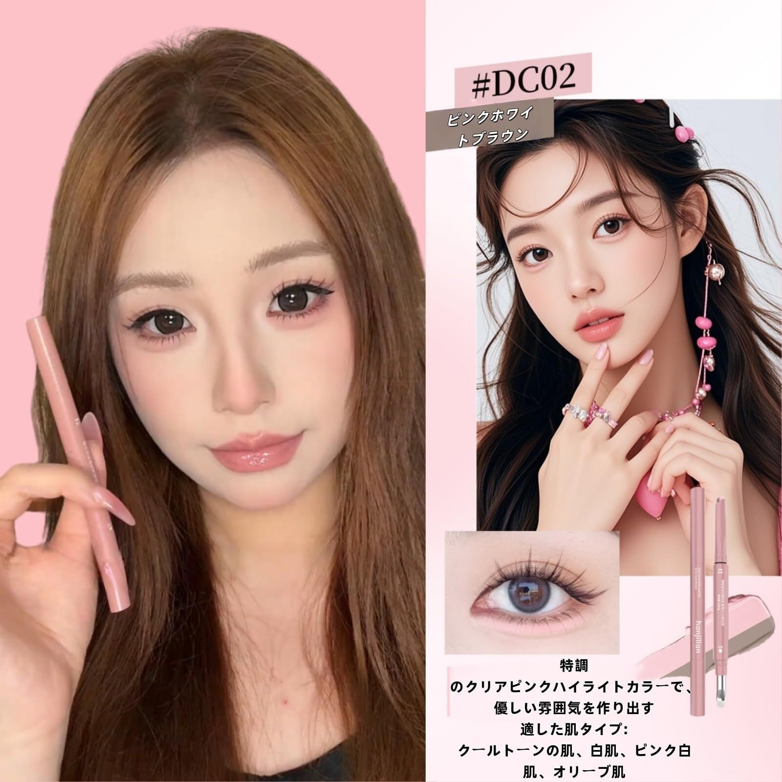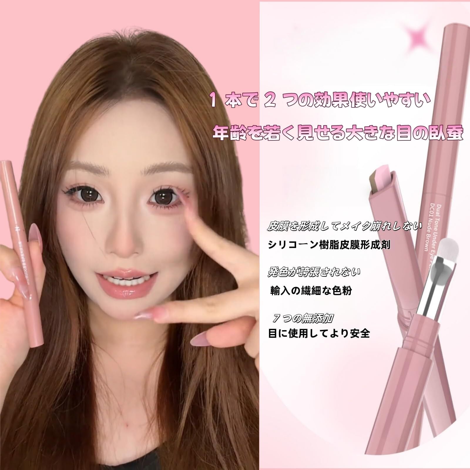 1. 【プロ仕様の2in1設計】これ1本で立体小顔メイクが完成 片側は精密なシャドウペン、もう片側はパール光沢のハイライトペン。プロが愛用する「ハイライト&シャドウ技法」を再現し、涙袋だけでなく、鼻影やリップの立体感づくりにも大活躍。顔全体の立体感をグッと引き立て、ナチュラルでありながらも印象的な「立体小顔」を叶えます。