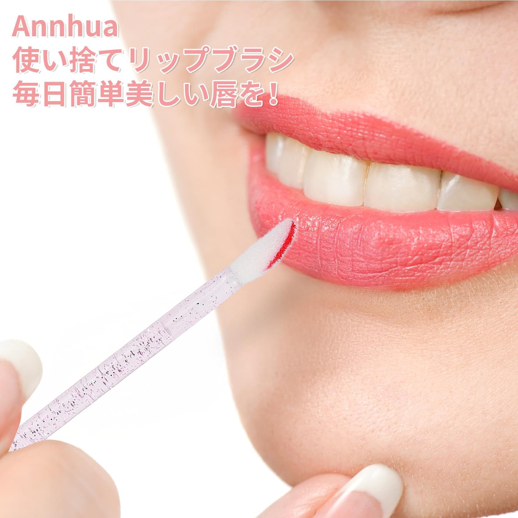 Annhua リップブラシ 使い捨て リップチップ 100本セット 携帯用 口紅ブラシ 大容量 業務用 口紅筆 持ち運び便利 旅行用 ピンク