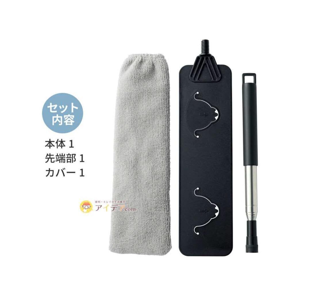 しなって、すき間にフィットするから家具のすき間もソファ下の床もラクラクお掃除! ベッド下もラクにお掃除できます。 洗えるマイクロファイバーカバー付 わずか約1cmのすき間もお掃除できます。 最大約127cmのびるので、家具下も高い所もお掃除できます。 ヘッドがしなって約1cmのすき間にもフィットして、ごっそり汚れを取り除きます。 ホコリをからめとるマイクロファイバー素材のカバーは取外して洗えます。 引っ掛けてスッキリと収納できます。 市販のフローリングワイパー用ドライシート、ウェットシート(約30×20cm)を取付けられます。 約51cm~最大約127cm伸縮可能でのびて用途に合わせてお掃除できます。