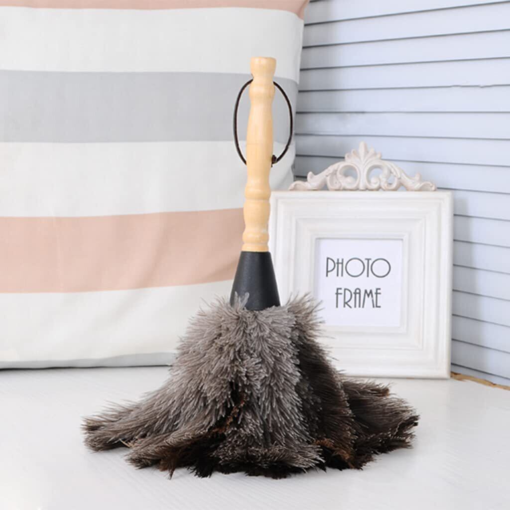 木製のハンドル付き環境に優しいダストブラシハンドヘルドクリーナーを備えた家庭用ふわふわダチョウの羽