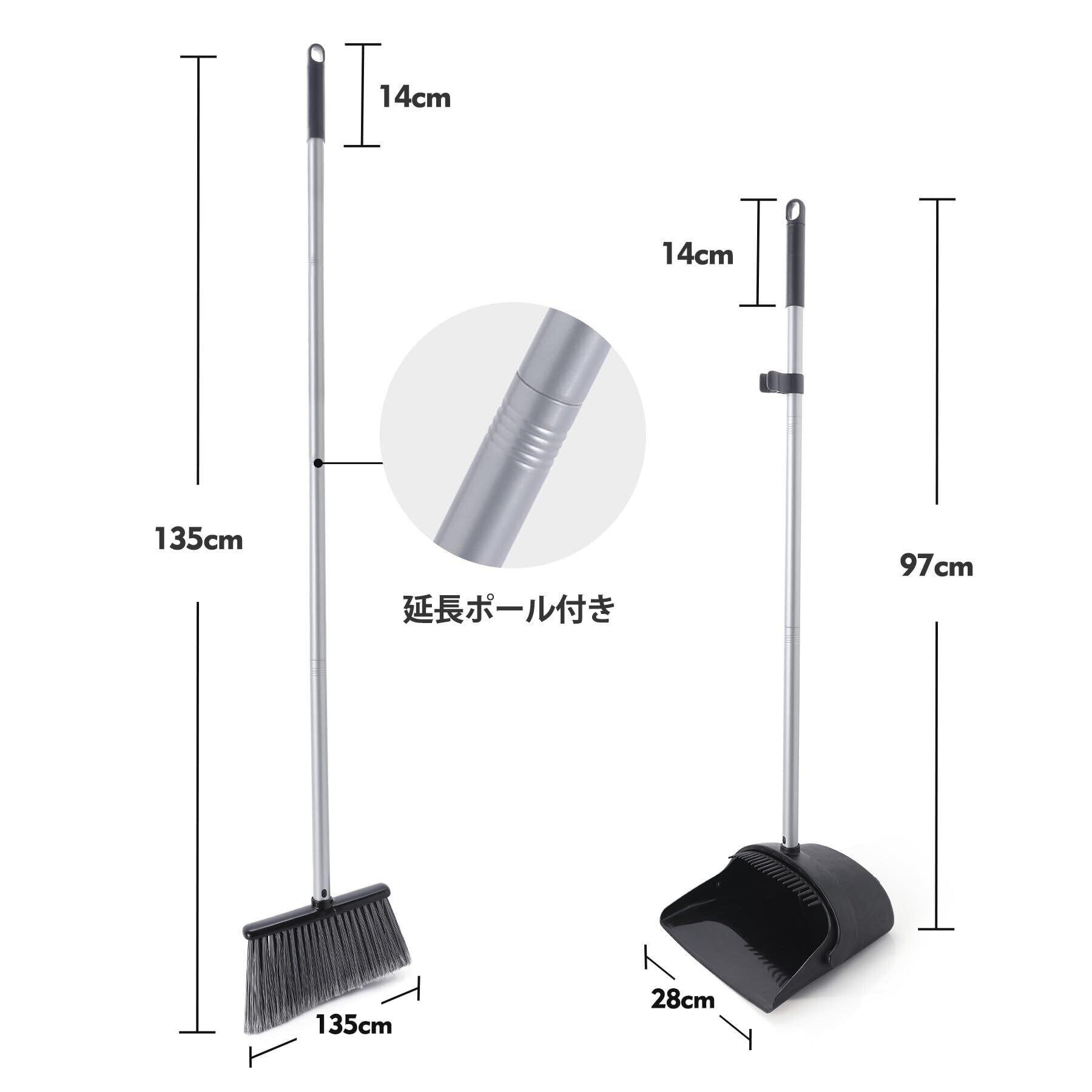 【本体サイズ】:「ほうき」:高さ94-135cm 「ちりとり」:高さ95cm 材質:鉄、PET、PP樹脂。