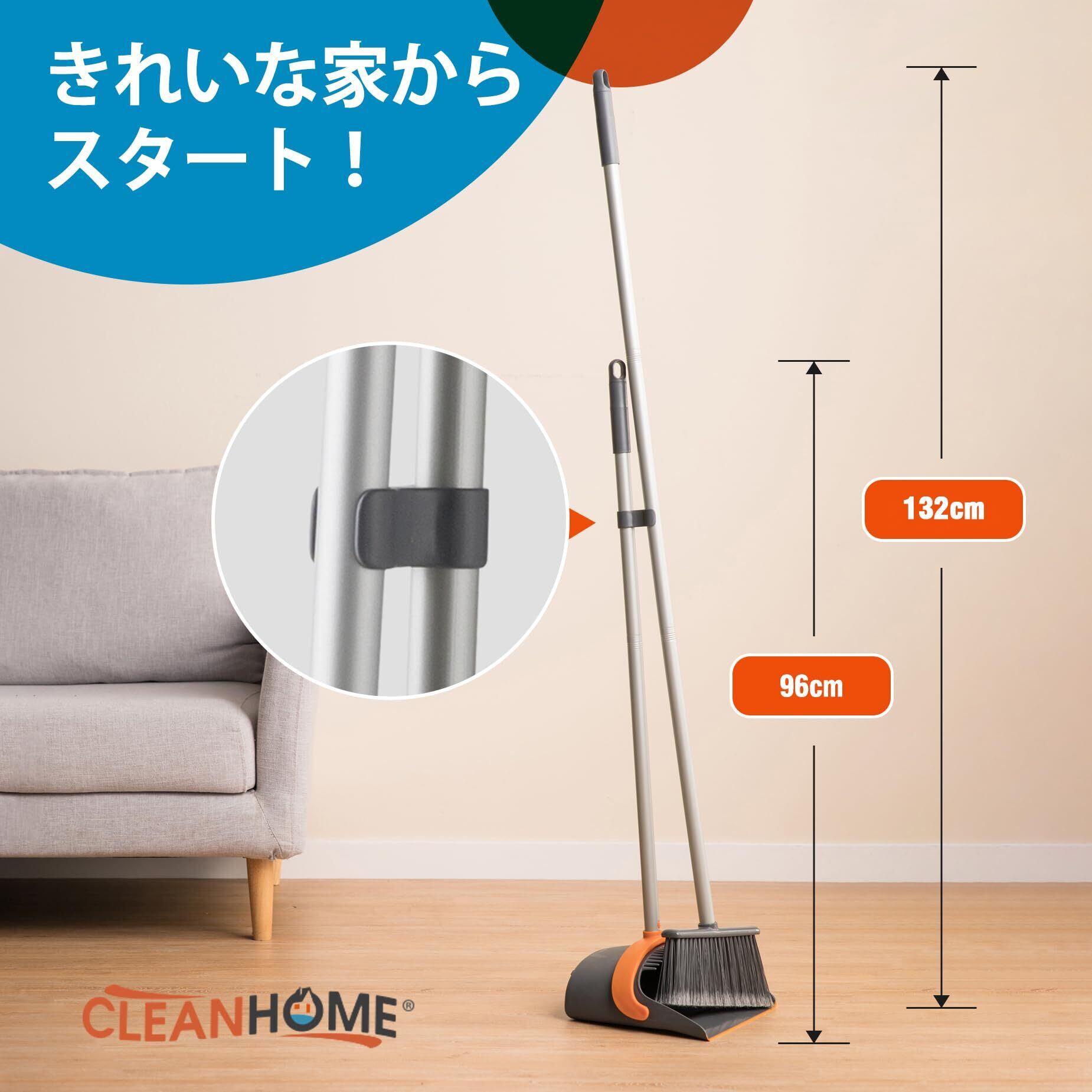 CLEANHOME ほうき ほうきちりとり セット ほうき 室内 屋外 立て式掃除セット 132cm調節可能 コンパクト 収納 防風式 軽量 腰曲げず 掃除可能 清掃用品 アウトドア/玄関/ガーデニング/庭/ベランダ/美容室/コンビニ最適