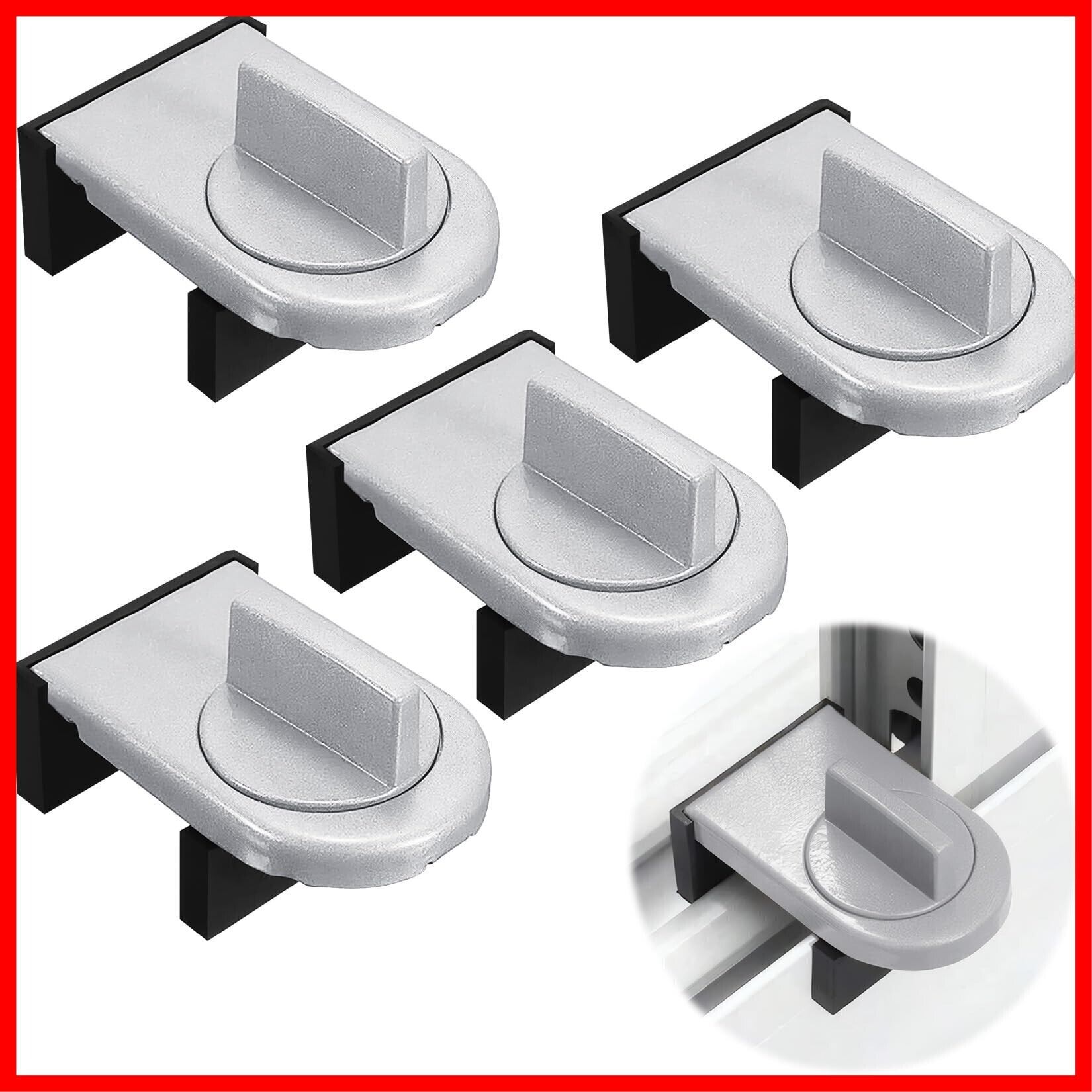 【新着商品】窓ロック サッシロック 窓補助錠 網戸ストッパー 防犯 換気 いたずら防止対応 窓ストッパー 引き戸対応 賃貸向け 子供安全ロック ペット対策 網戸ストッパー(シルバー 4個セット) | Cherry Blossoms