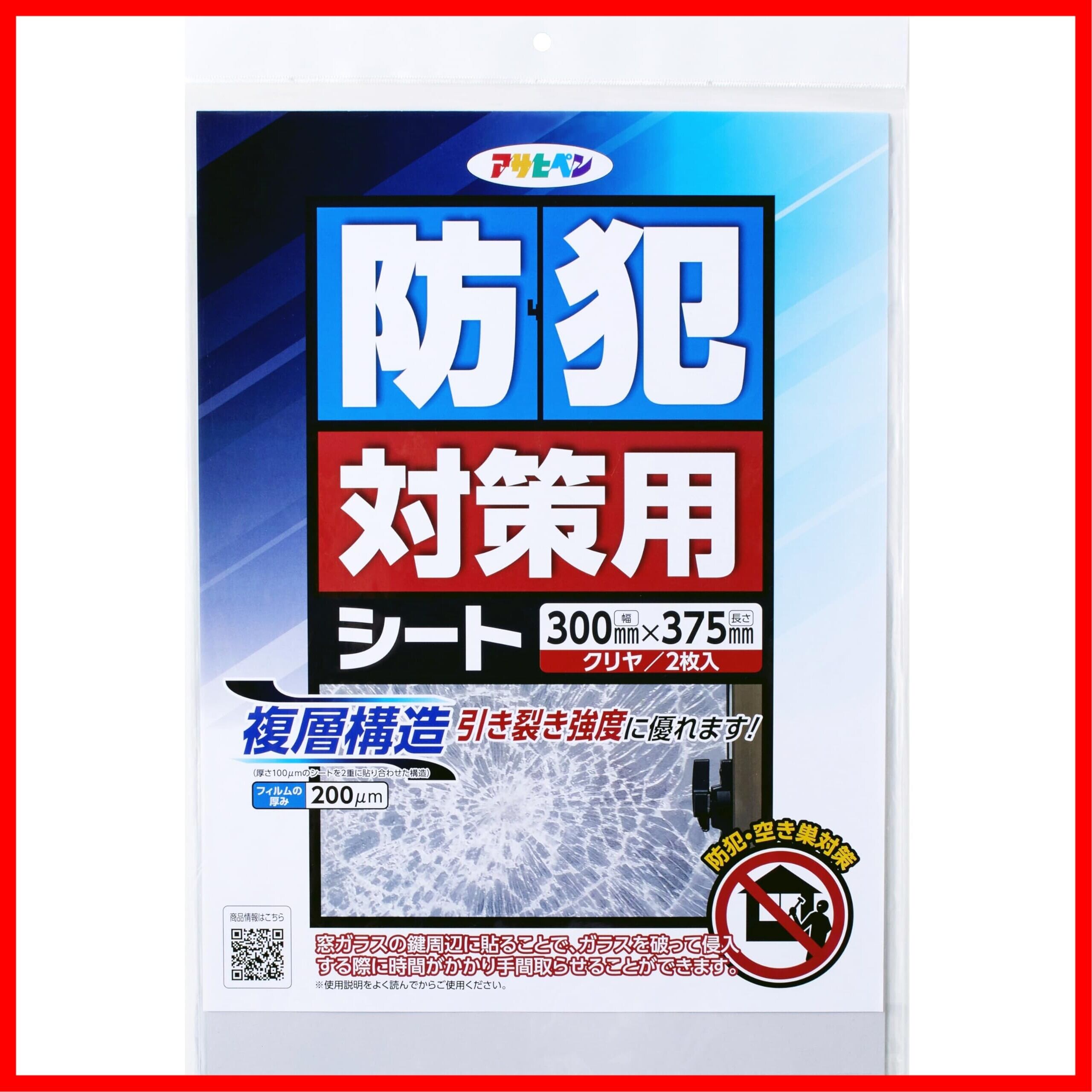 アサヒペン 窓ガラス用 防犯対策用シート 2枚入 幅300X長さ375mm BT-02 クリヤ 水で貼るタイプ 防犯 空き巣対策 日本製
