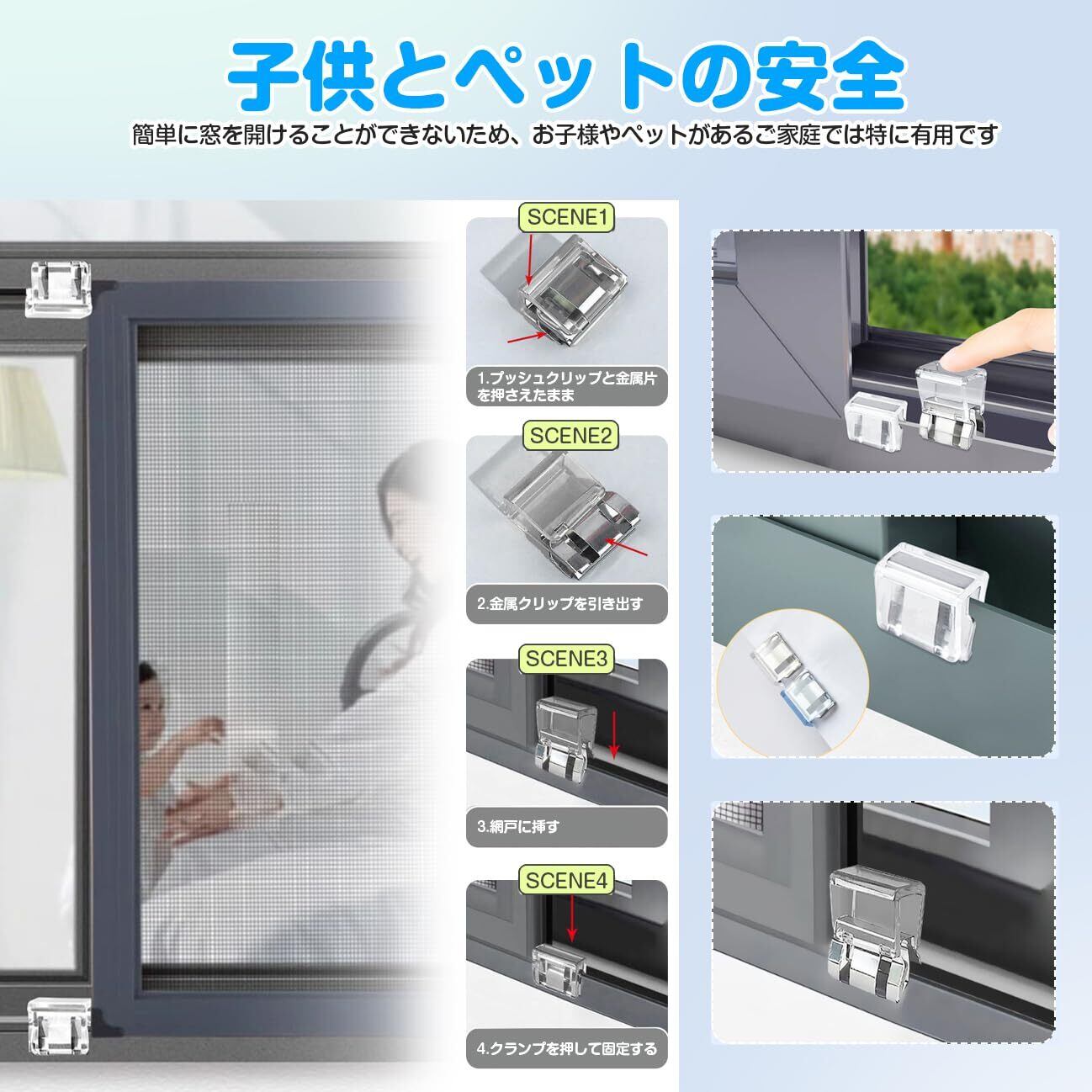 窓ロック 窓ストッパー 網戸ロック 補助錠 猫 犬 子供 転落防止 ペット 防犯 防犯対策 4個セット 取り付け簡単 書類クリップ 書類整理 文具 事務用品 透明 サッシ ストッパー 窓補助錠 脱走防止 2*1.6cm