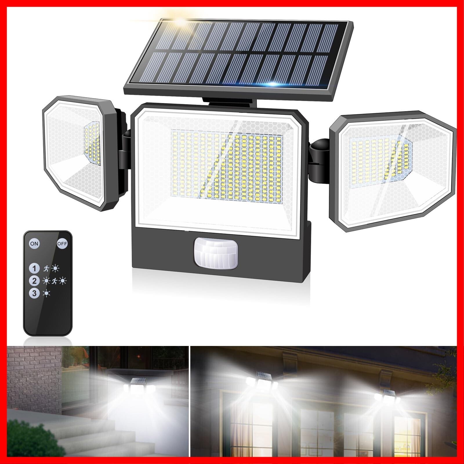 【アップグレード440LED】ソーラーライト 屋外 センサーライト 3つ知能モード 照明角度>300° 全方位調整可能 高輝度 光束3000ルーメン 人感センサー IP68防水 防犯 壁掛け ガーデン/庭先/表玄関/駐車場に適用 地震や台風の災害停電時 照明供与 リモコン付き 取り付け簡単