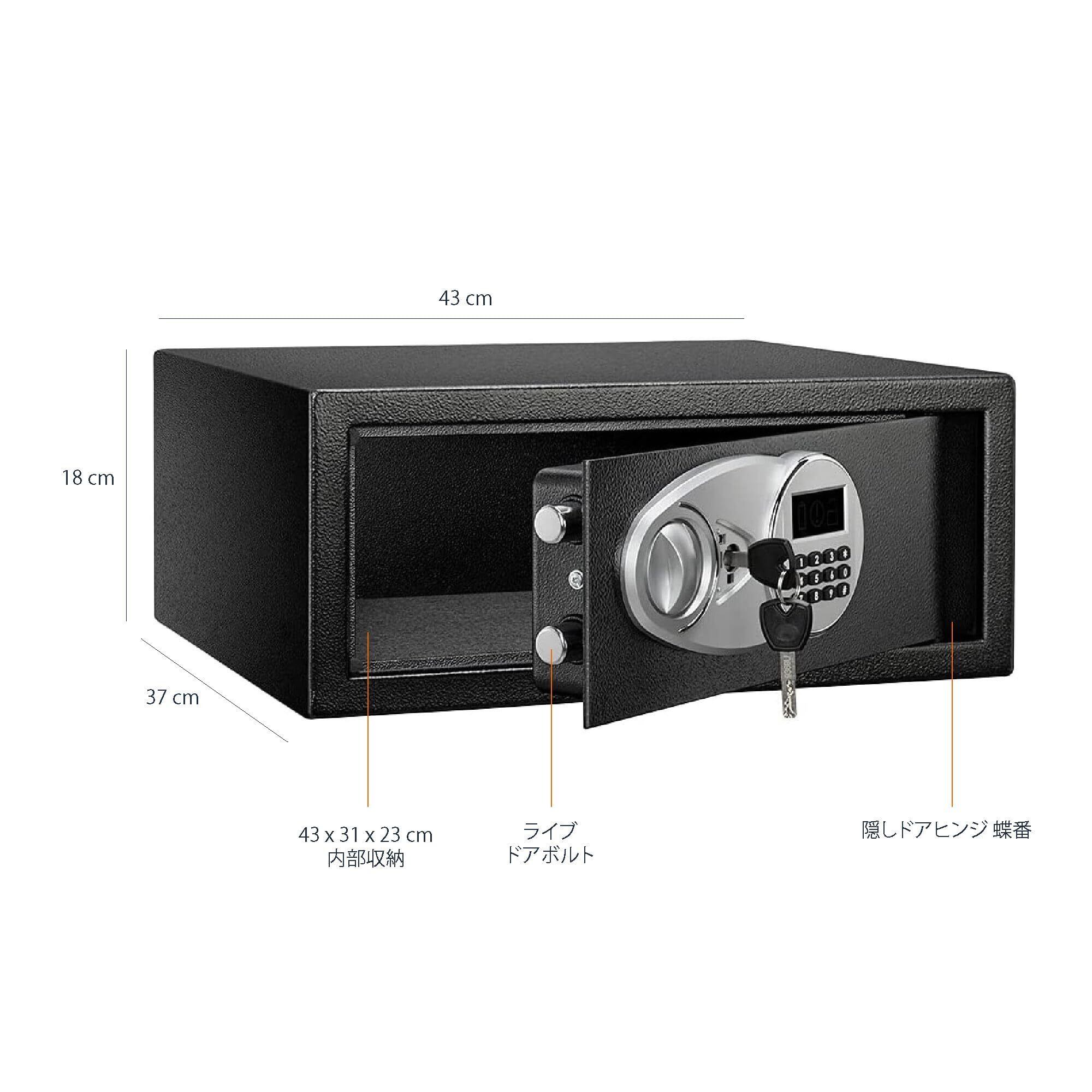 ベーシック 金庫 家庭用 業務用 電子式 19.8 L (幅43cm x 奥行37cm x 高さ18cm) スチール ブラック