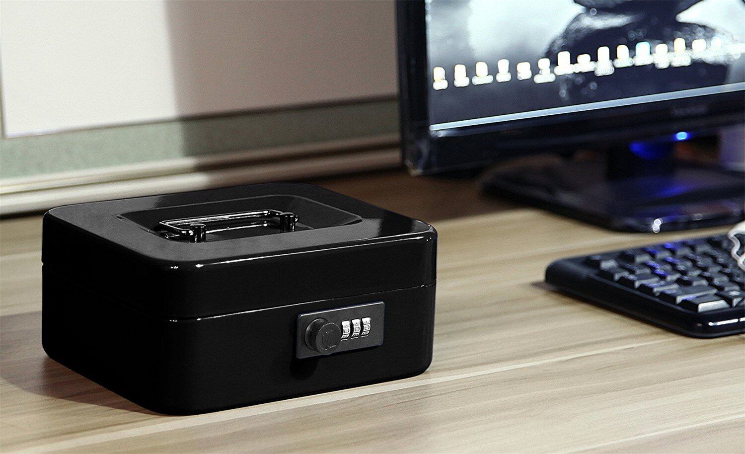 Jssmst(ジェスマット)手提金庫 ダイヤル式 金属製 20x16x9cm B6サイズ CB0702M (ブラック)