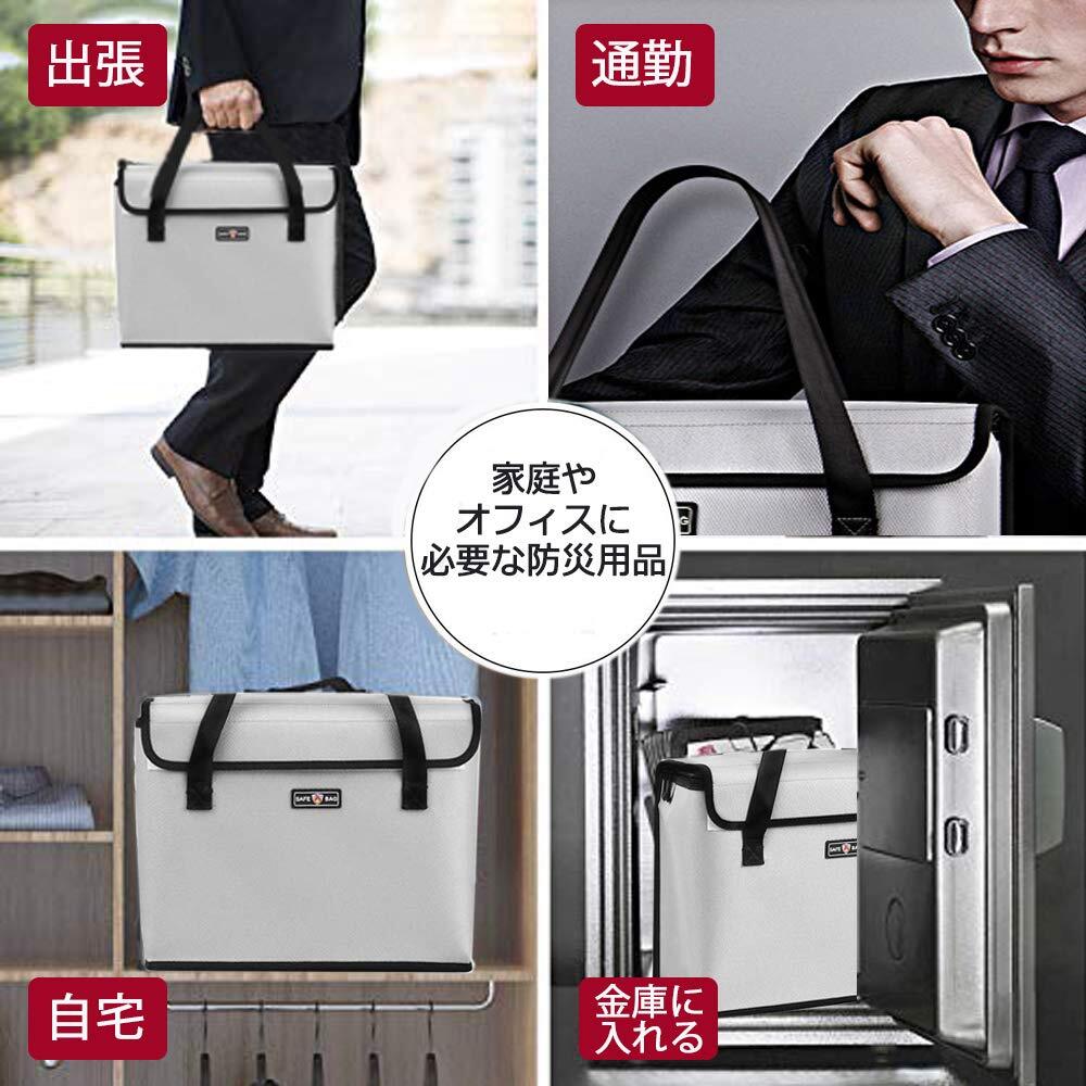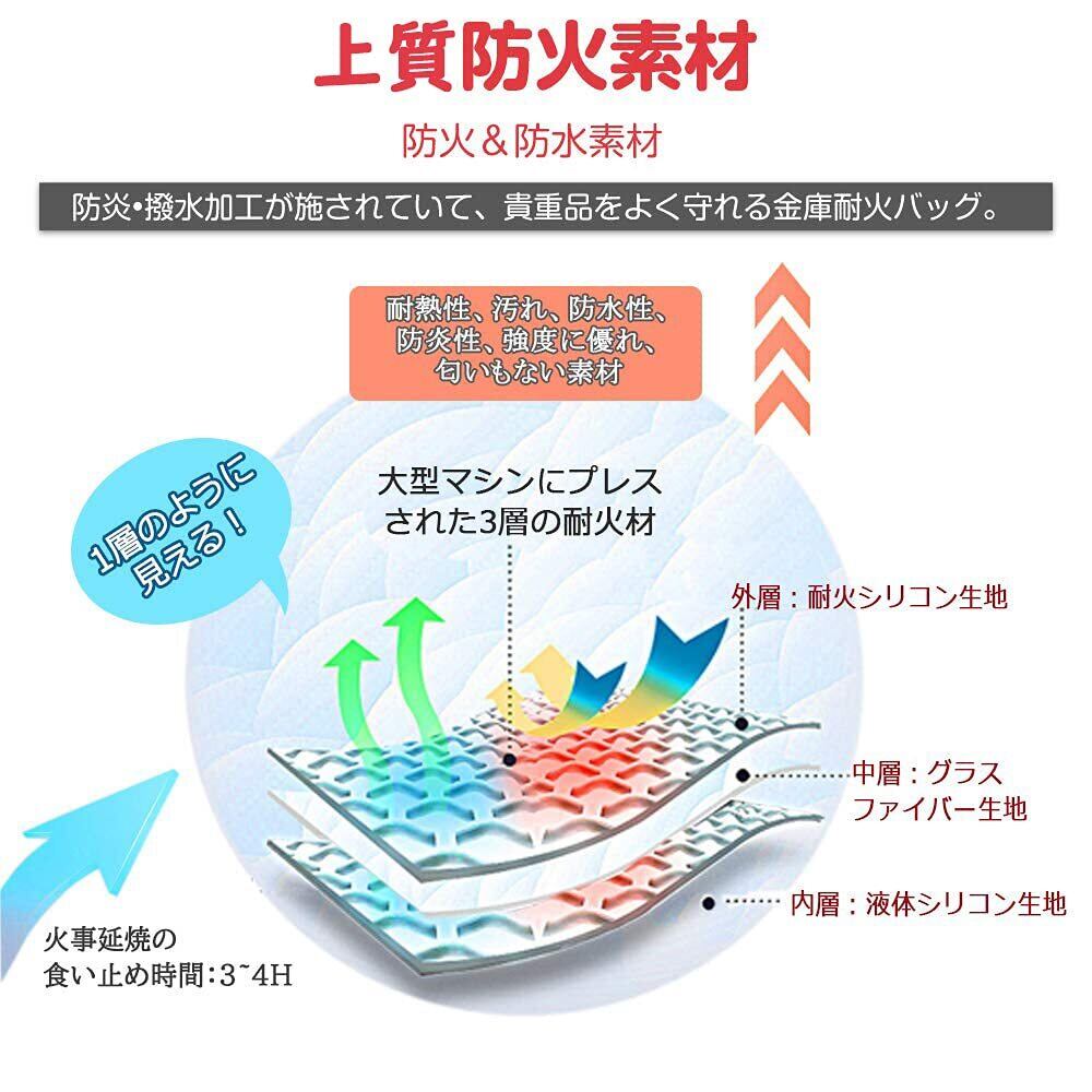 NGE耐火バッグ 書類保管ケース 防火 防爆 防水 防災 耐熱1000度 現金収納 金庫耐火バッグ 手提げ 家庭用 A4サイズ対応 大容量 ジッパーとベルクロ付き 耐火袋 34×28×13cm