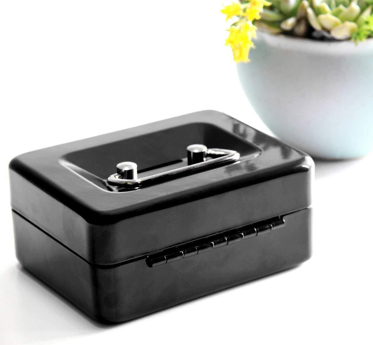 Jssmst(ジェスマット) 手提金庫 キーロック式 コインケース 貯金箱 金属製 ミニサイズ 軽量 子供 ギフト 15x12x8cm (黑 NEW)