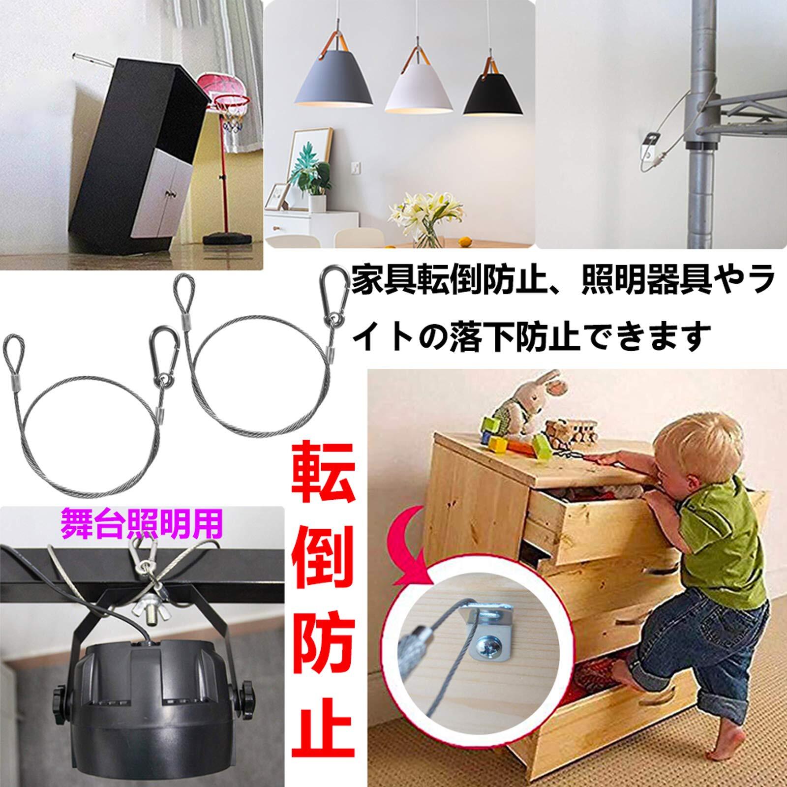 落下防止 セキュリティ ワイヤー ケーブル フック付き 舞台 照明 スポットライト安全 ワイヤー 耐荷重/35kg 防災 用品 地震対策 転倒防止 2mm/3本 (0.5m長)