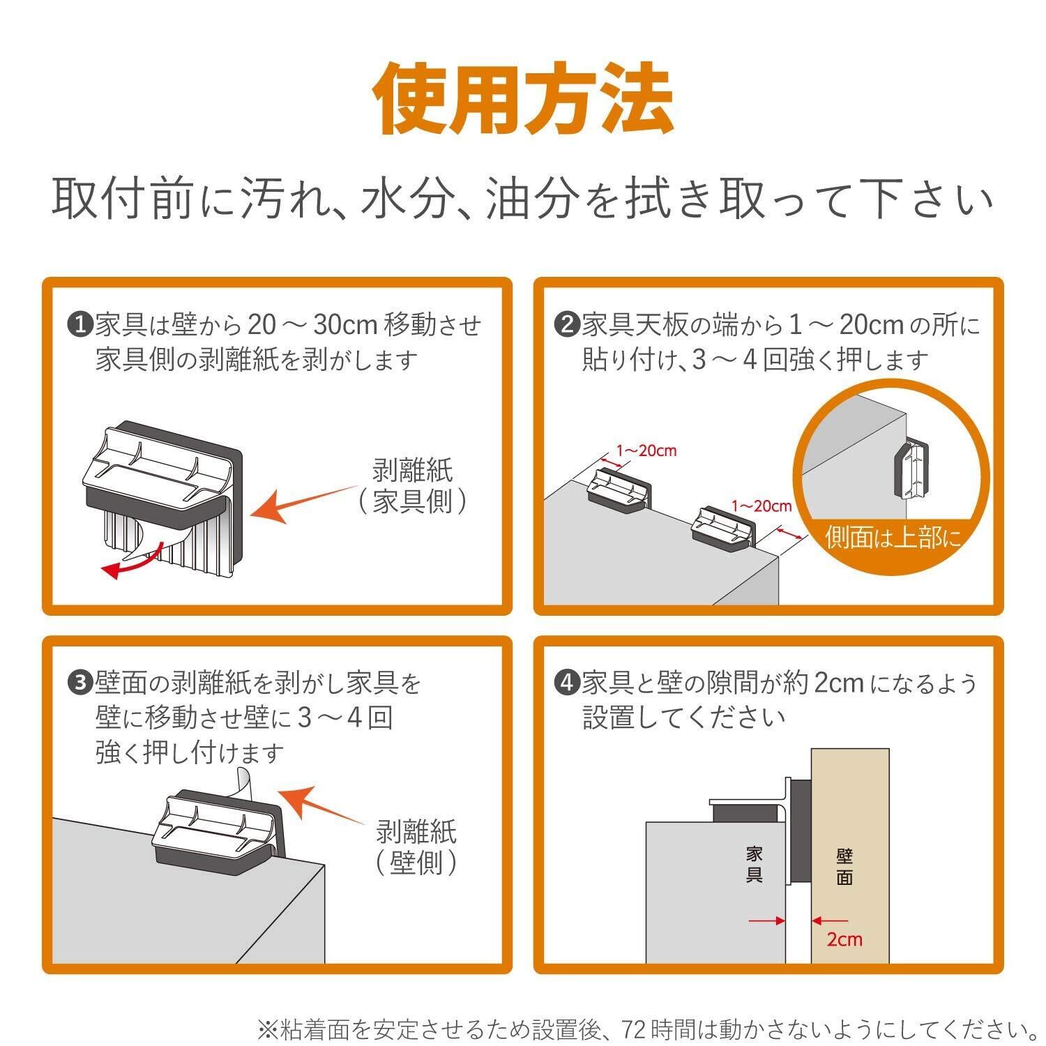 地震発生時に、衝撃吸収パッドが地震の揺れを吸収する。震度7対応の家具転倒防止器具“揺レタン"