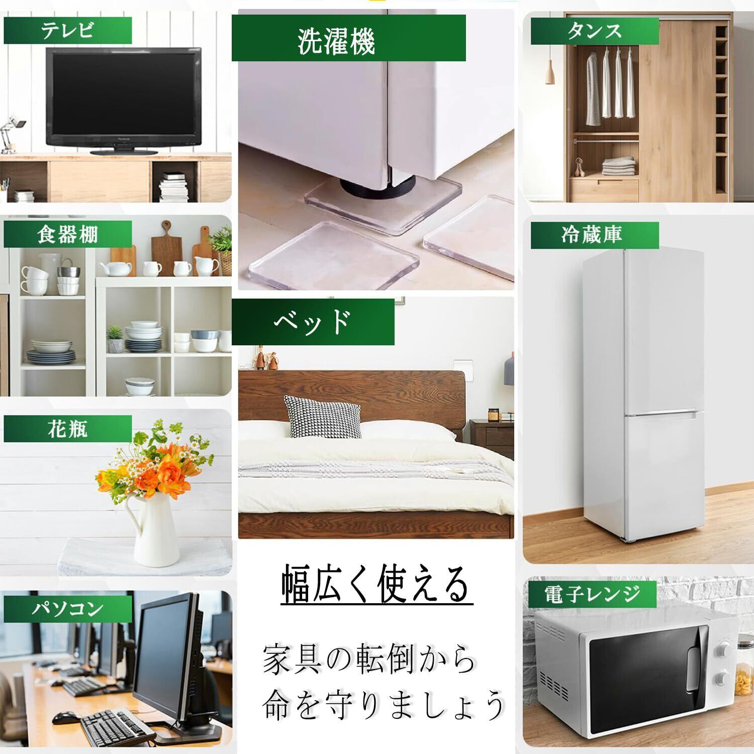 【大型家具専門、5mmの厚さ】5mmほどの厚みで、冷蔵庫や食器棚などの大きいものがぴったりで上下左右の揺れも軽減できるでしょう。更に、接着剤は使っておりませんので、剥がしてもあとが残りません。水洗いして乾燥させることで、繰り返して使えます。
