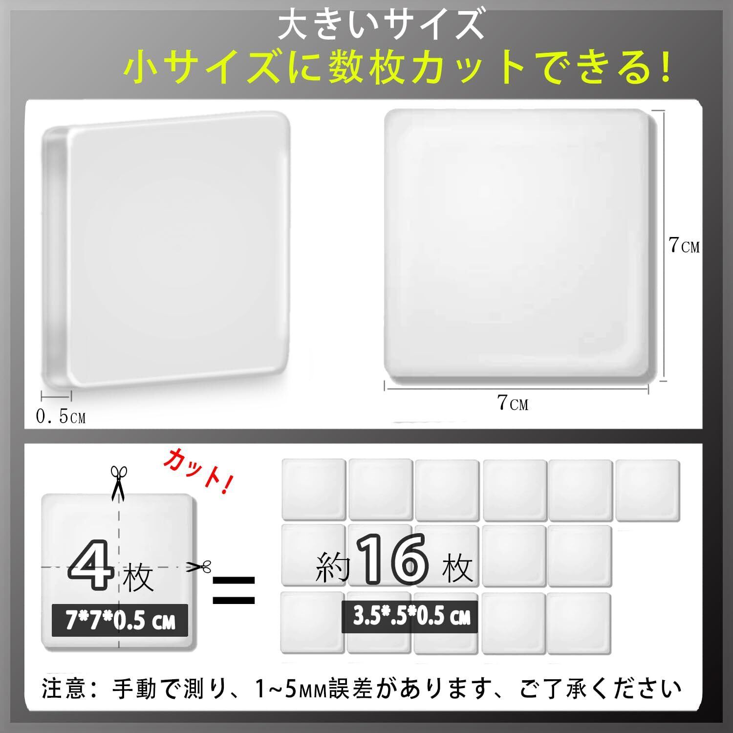 【カットでき、数が倍増!】当耐震マットのサイズは7cm*7cm*(厚さ)0.5cmで、おニーズがあれば、かさみ一本で、4枚大きい耐震マットは16枚小さい(3.5cm*3.5cm*(厚さ)0.5cm)のをカットでき、使い幅が更に広くになります。