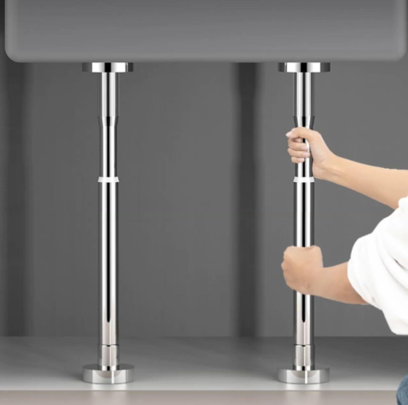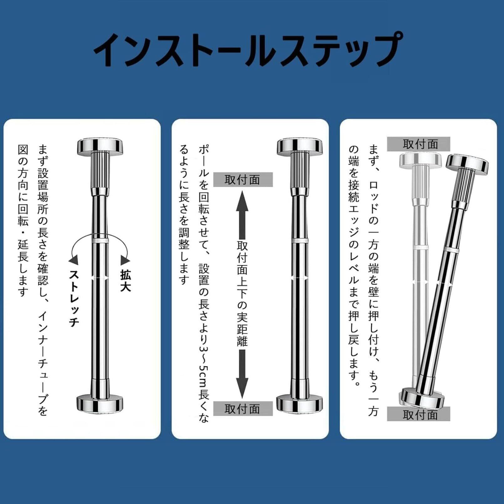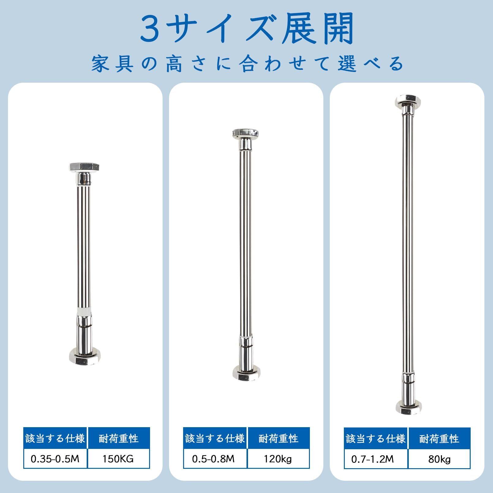 【高品質の素材】高分子合成樹脂とステンレス鋼で構成、家具との設置面は、高密度のウレタン素材を使用、防水・防湿、耐食性。地震度7度、圧縮重量150-200kg、伸縮棒は錆びが出ない上に、カビにも強いです。(ご注意:設置された長さが違うと、荷重能力は変わります。伸縮が少ない方がより荷重能力がもっとよいです)。